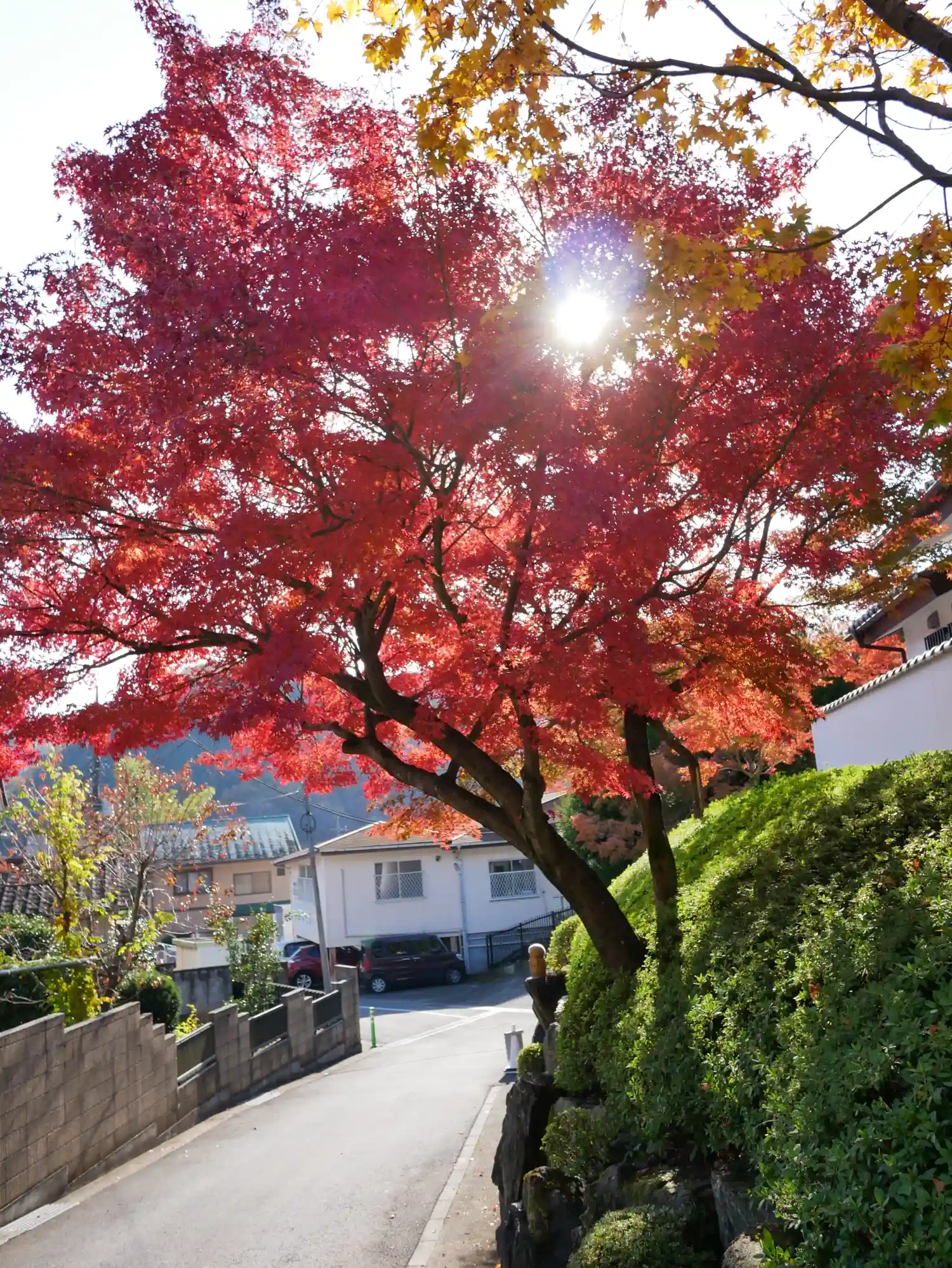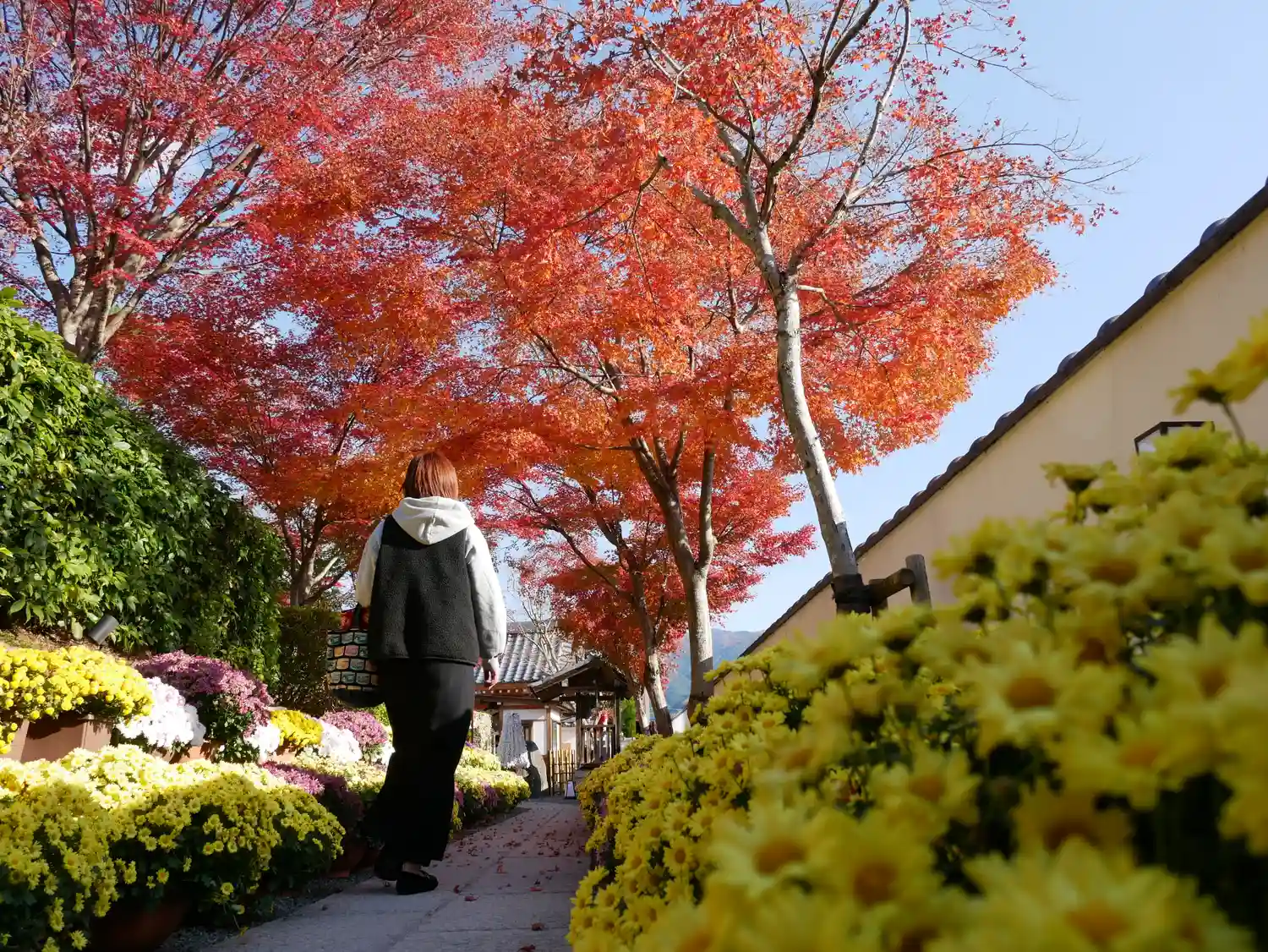 道路沿いに駐車場があり、道を渡って少し歩くとお寺があります。