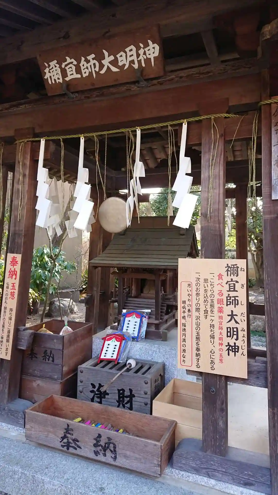日限地蔵尊は、地蔵さまと繋がっている五色の紐を握れたりするのですが、ちょっと面白かったのが、眼病に効くという禰宜師大明神。