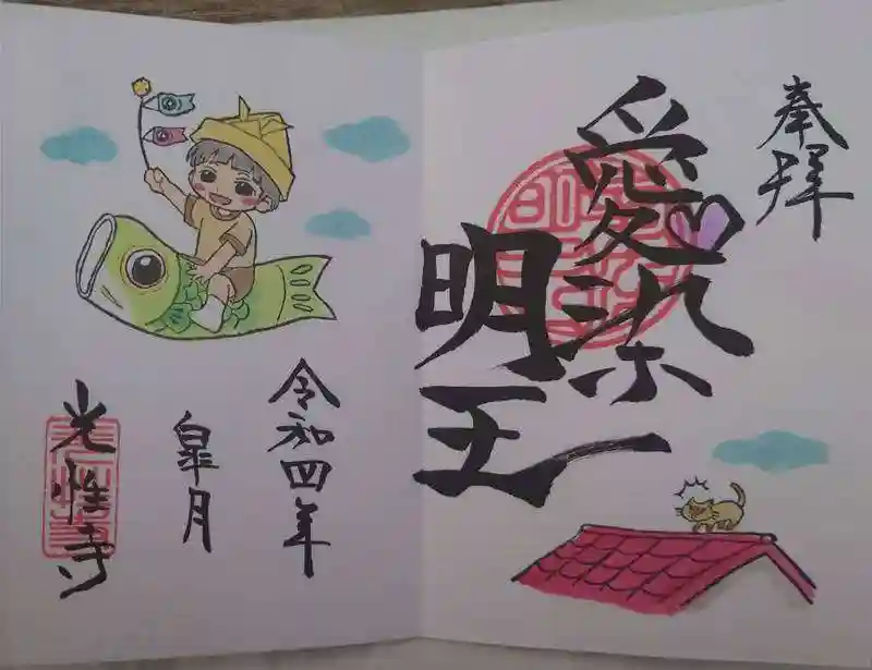 光性寺で5月の御朱印愛染明王の御朱印と不動明王の御朱印です。