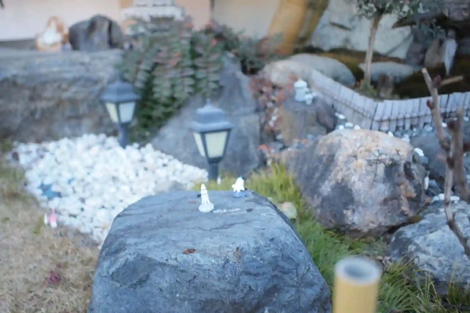 ちょっとした庭園部分にもフィギュアかな?飾ってあって遊び心があります。