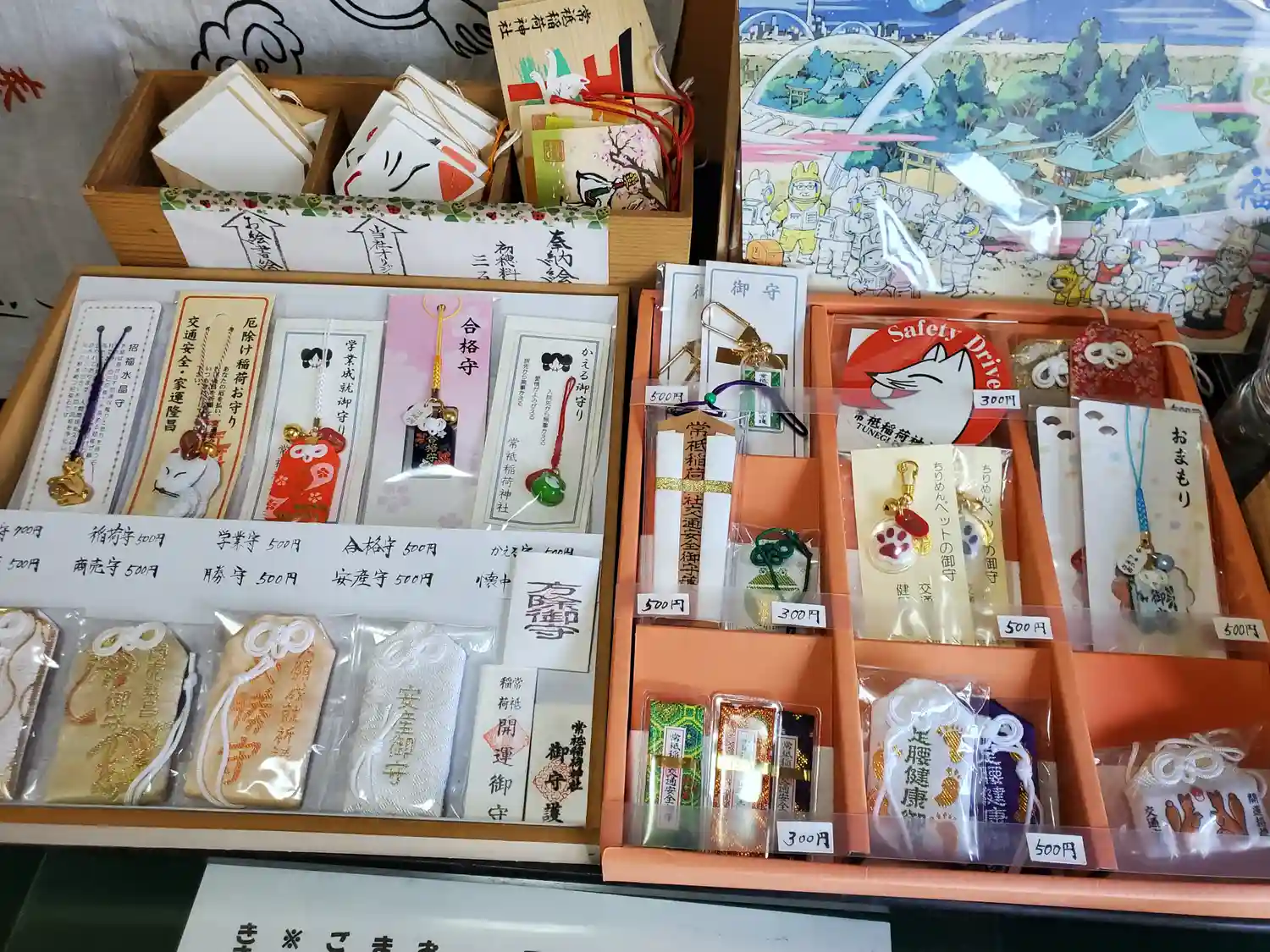 拝殿前に書き置き御朱印と授与品