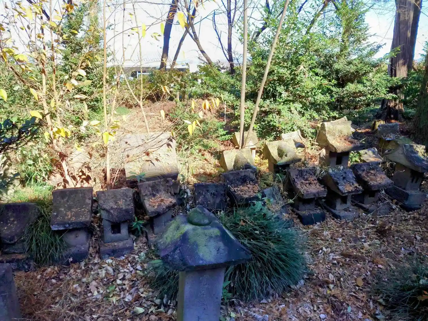 明治になると、20社程が統合され、神様がお留守になった祠が並んでいました。