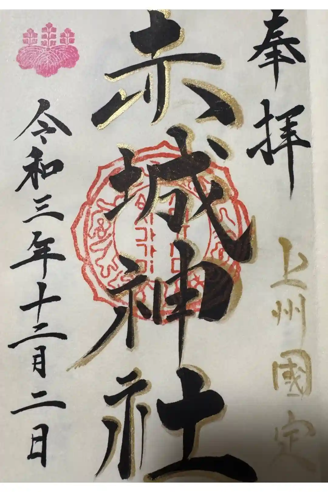 國定赤城神社様へ参拝させていただきました⛩️ 御朱印お書入れいただきました。 ありがとうござい…