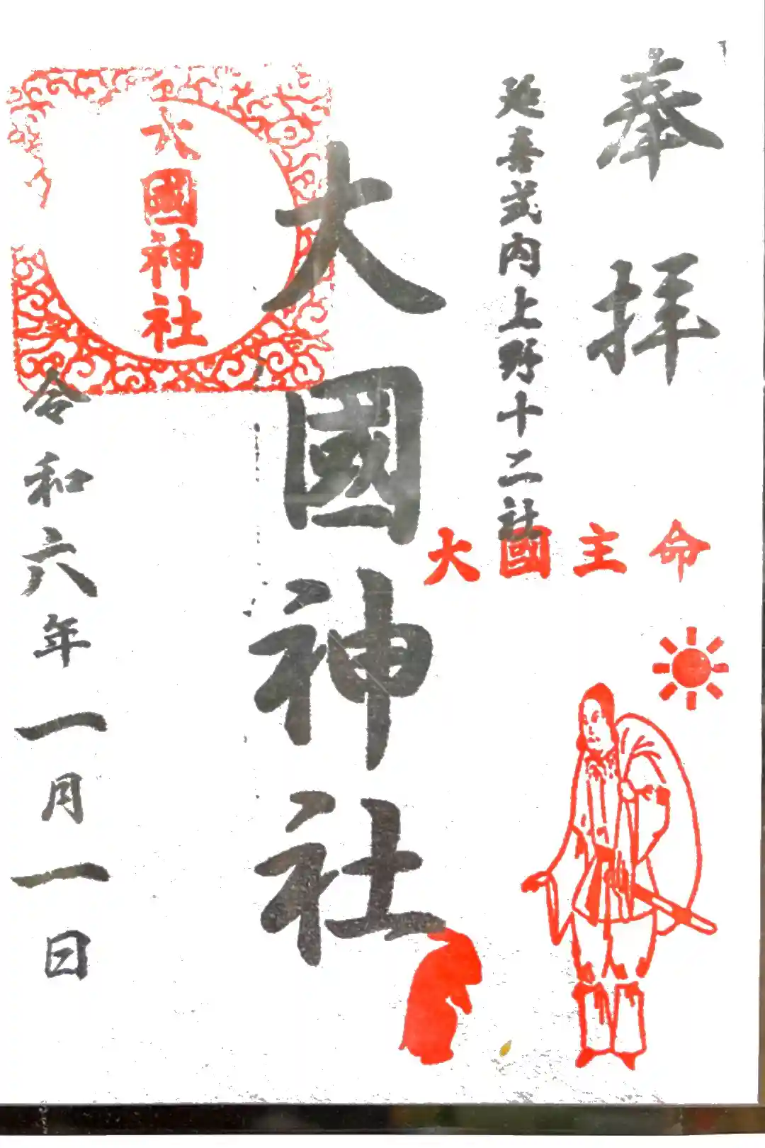 大国主命と兎のスタンプの御朱印が頂けました^_^