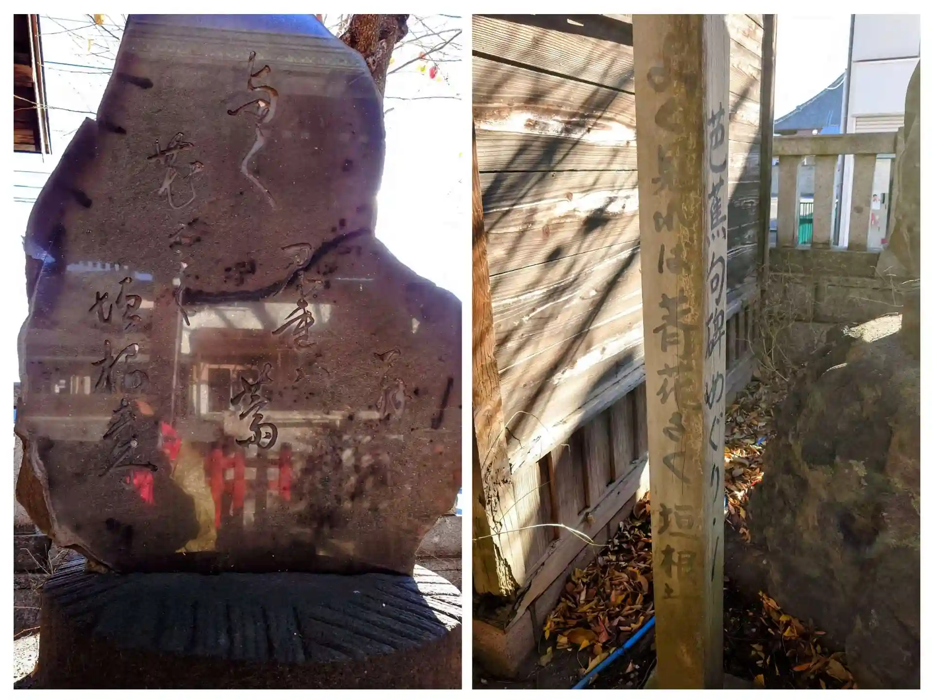 明治九年(1876)に楊州庵半海社中が建立した「よく見れは薺花さく垣根哉」の芭蕉句碑