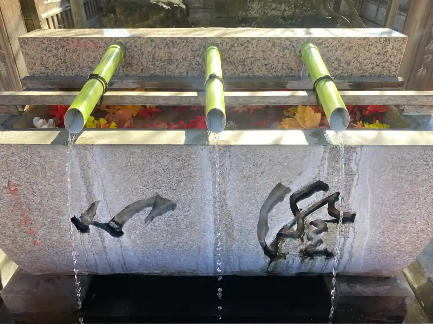 手水舎。筒から水が出ています。