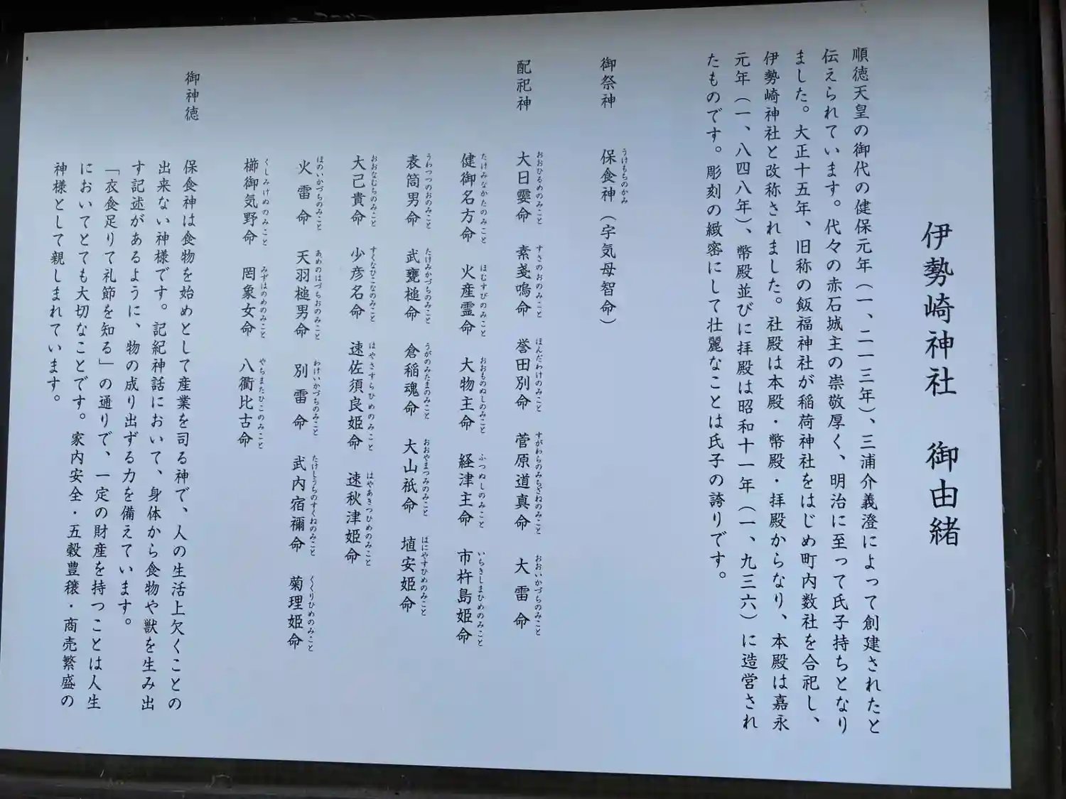 ご祭神は保食神(宇気母智命)