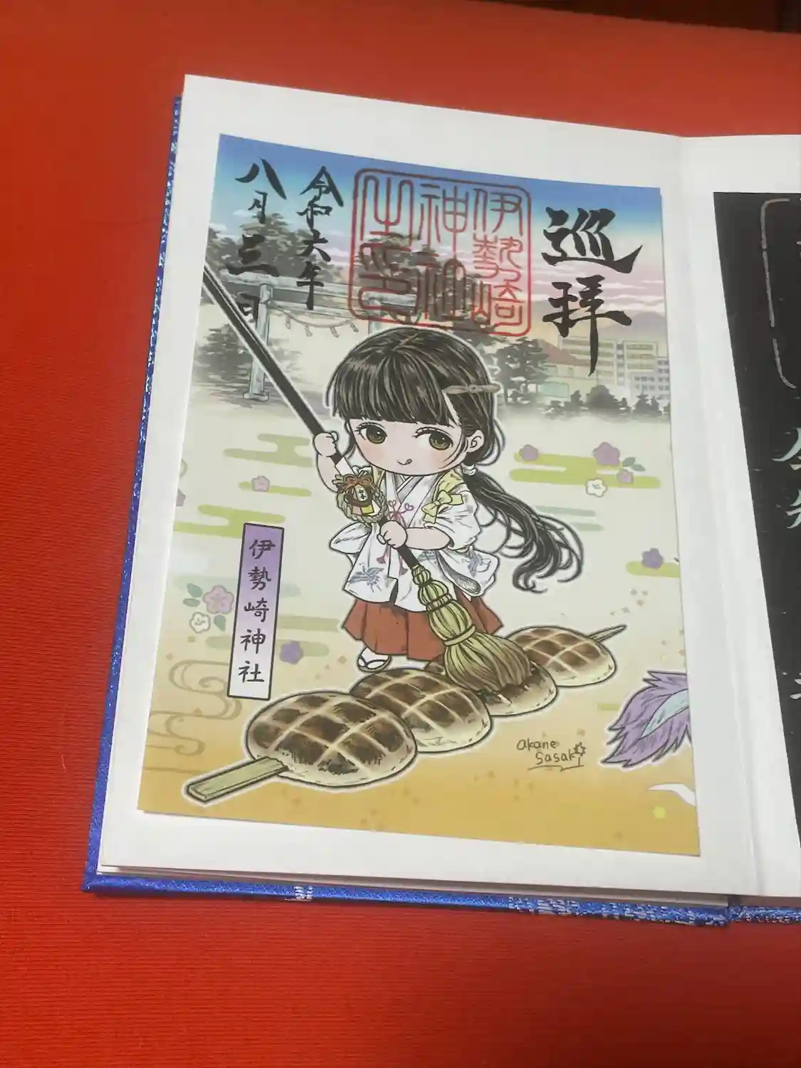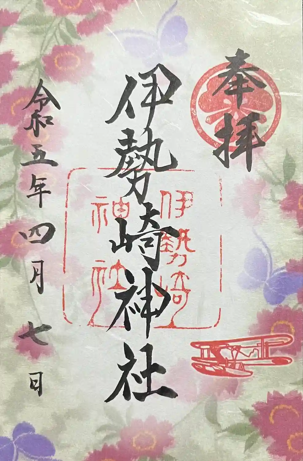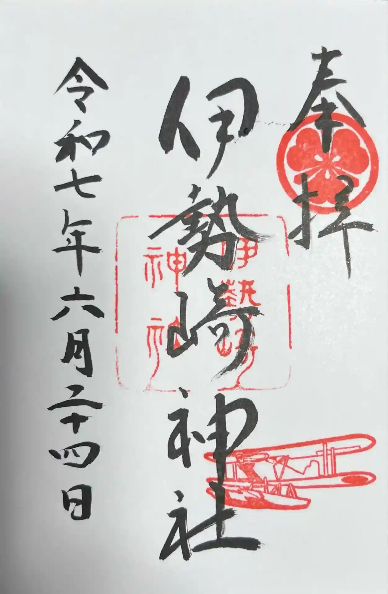 通常の御朱印をお願いしたら「夏詣」の印が。飛行機の印と、伊勢崎神社さんの印と合わさって全体のバランスといい雰囲気といいなんかとても素敵。