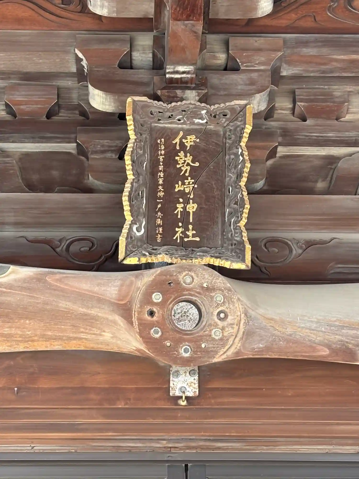 拝殿正面の上部には木製のプロペラ✨