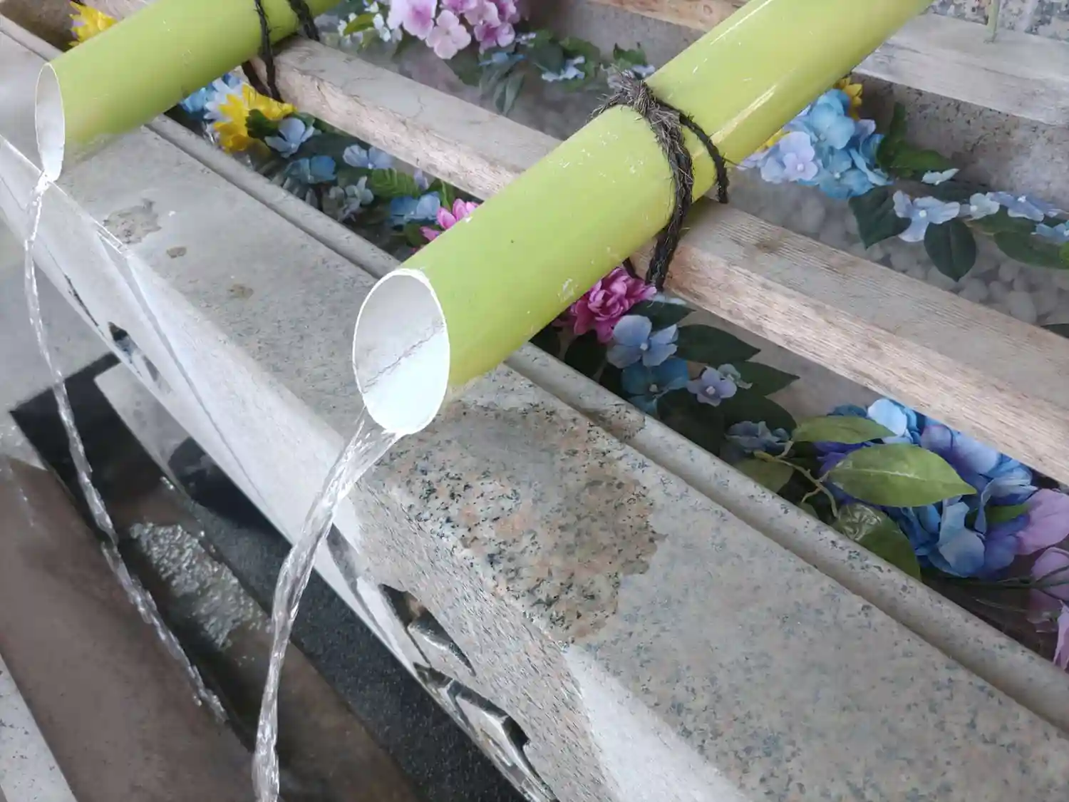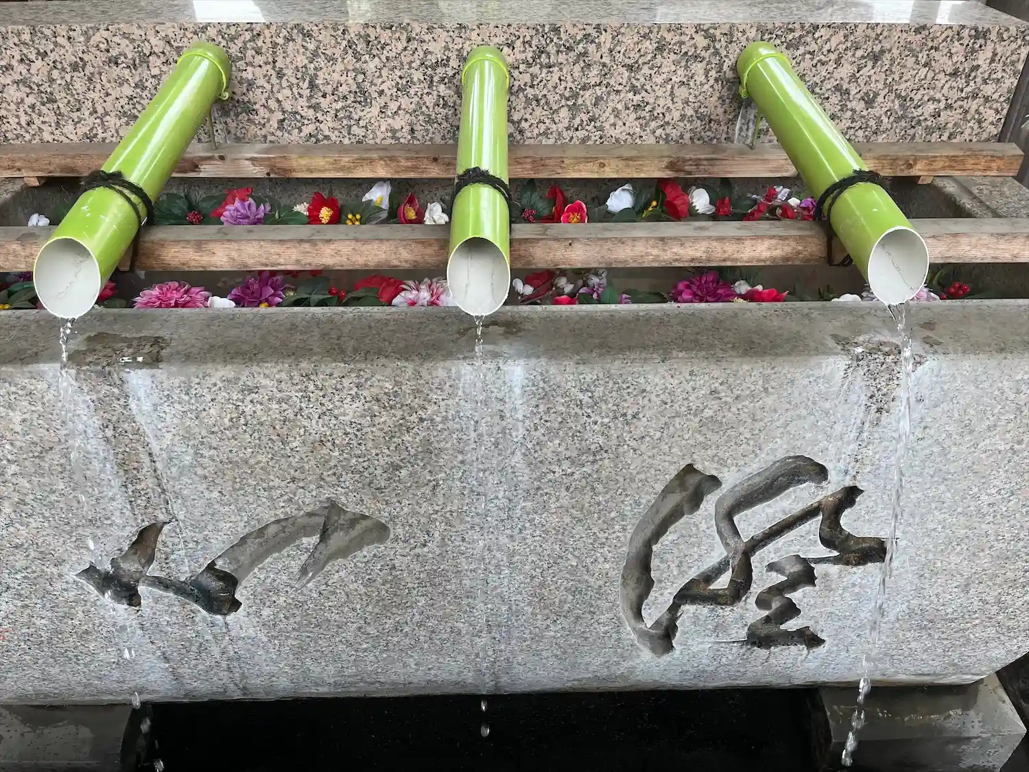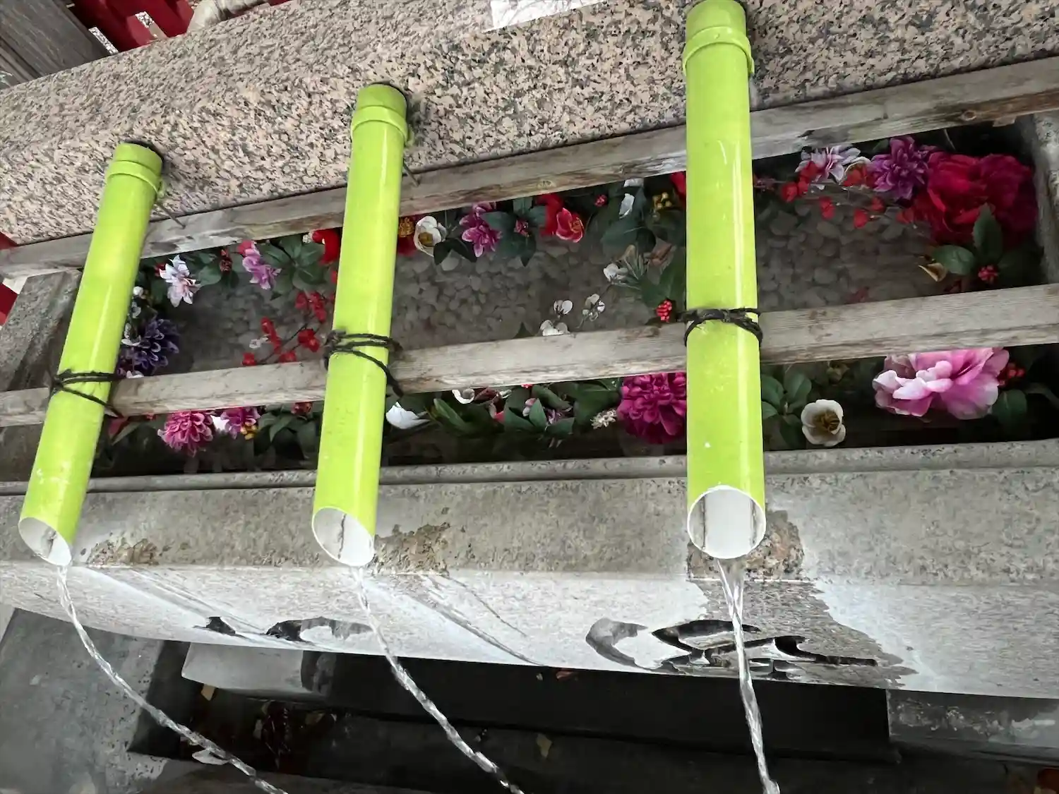 手水舎。筒から水が出ています。