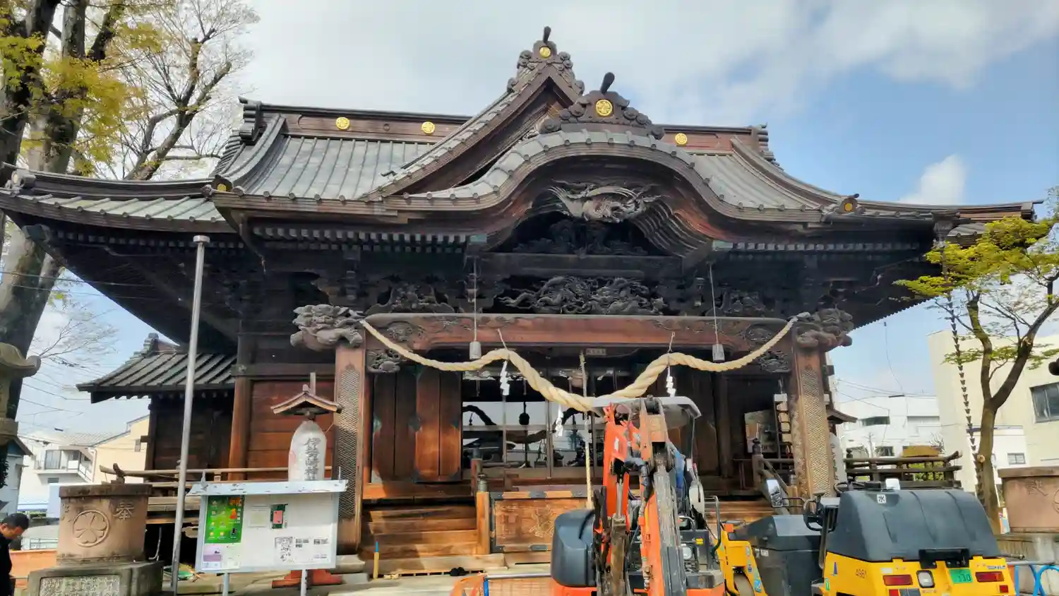1213年創建。1848年築の本殿には壮麗な彫刻が、拝殿上部にはなんとプロペラが張り付いています。…