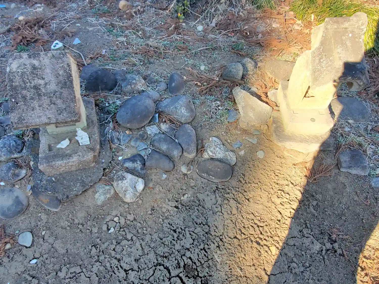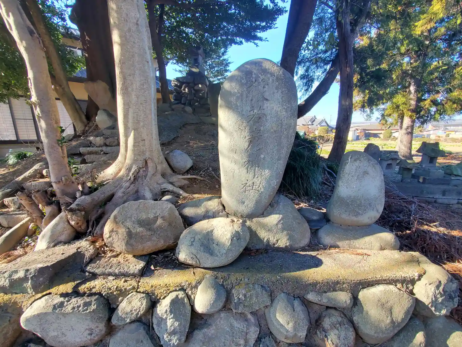 神社の左側にあった力石っぽいもの
