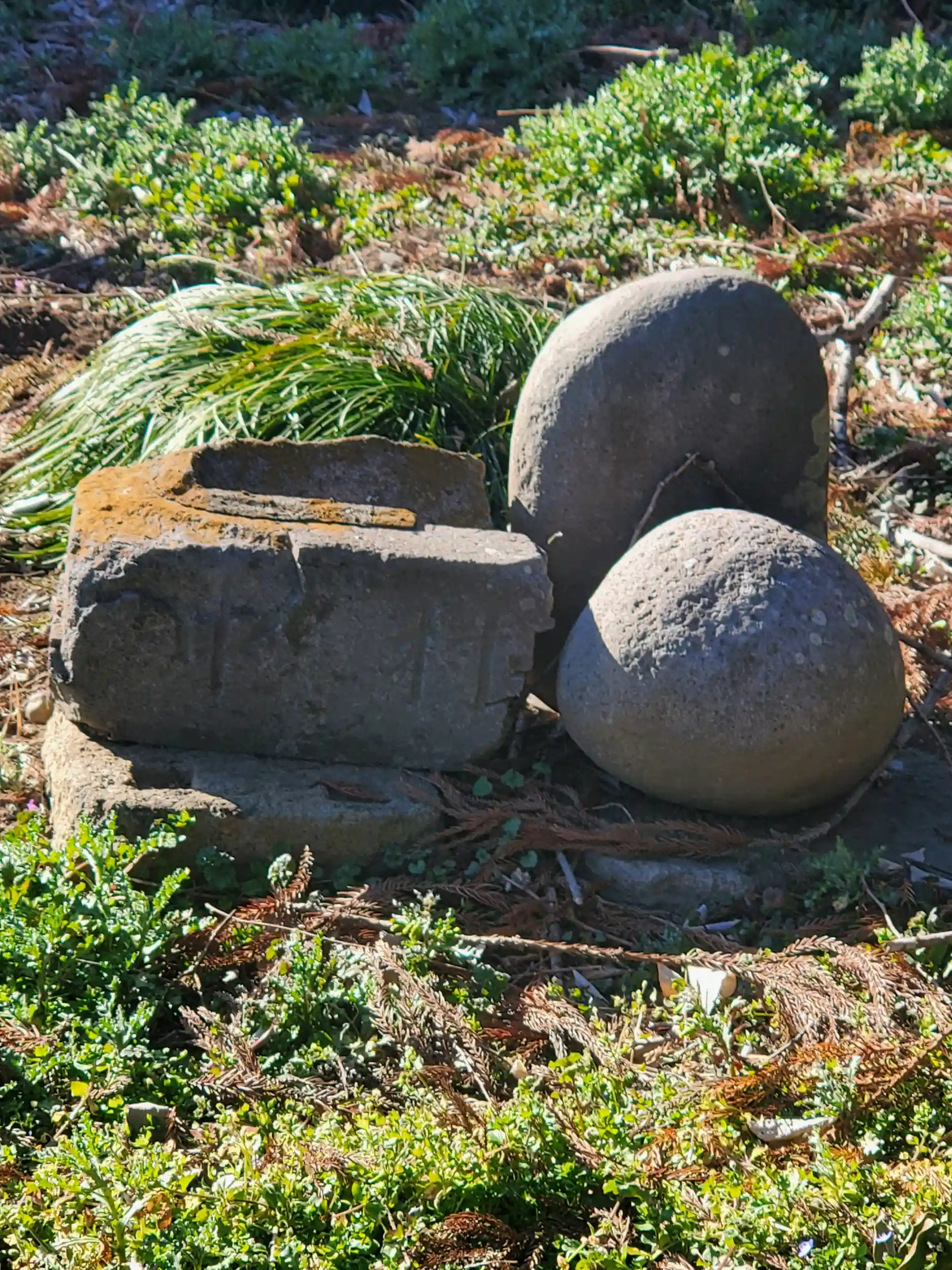 神社の左側にあった力石っぽいもの