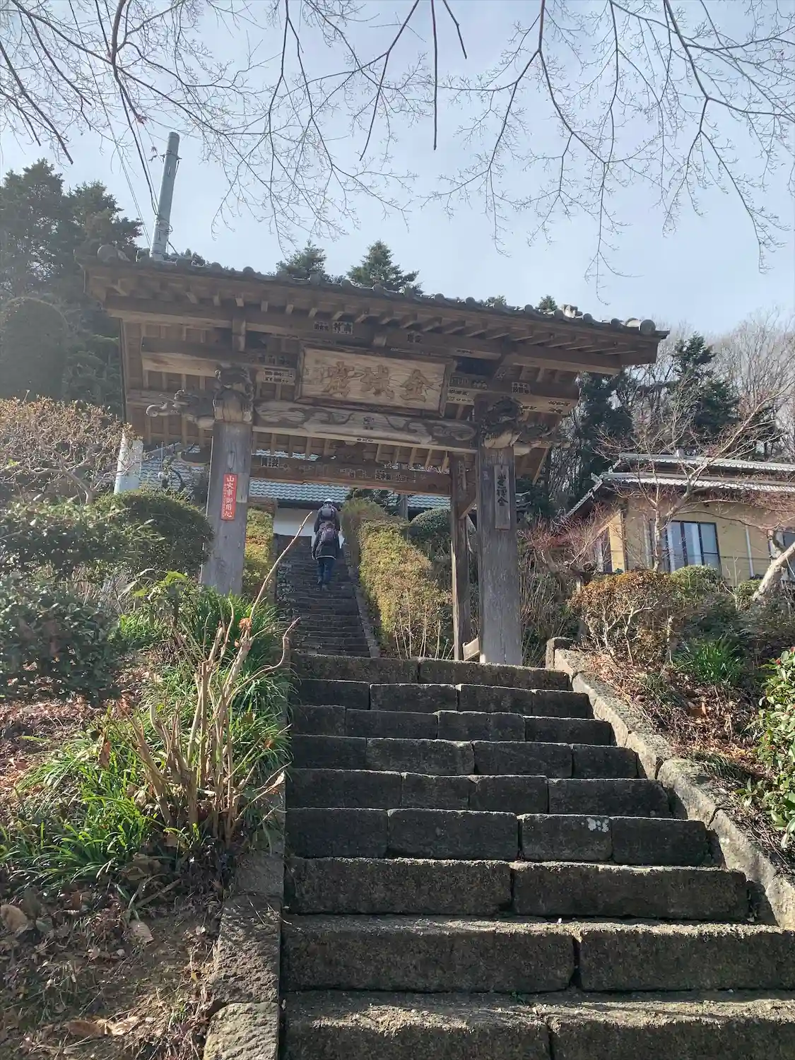 ちょっと段の高い石段の中ほどに山門があります。