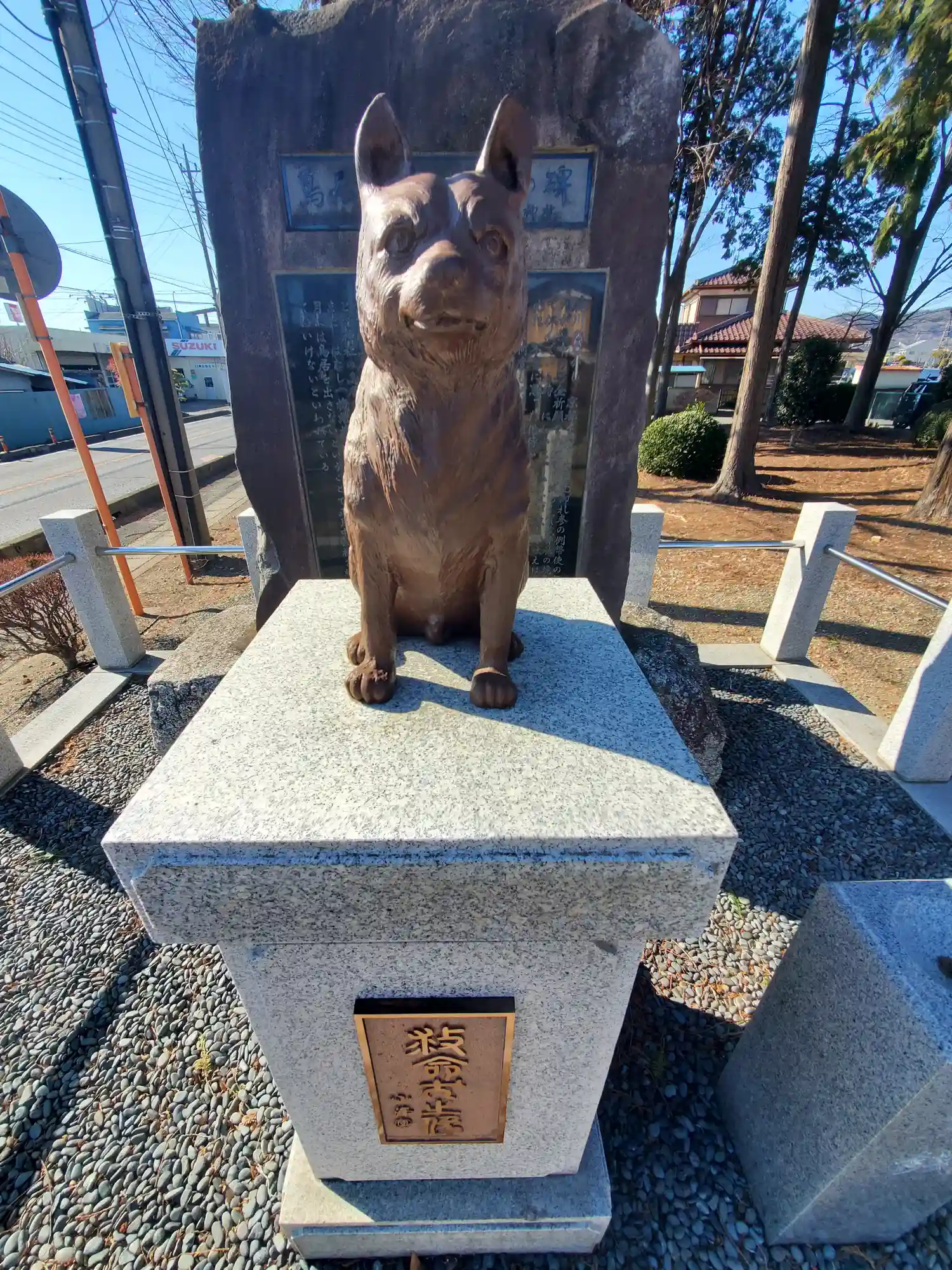 言い伝えの通り鳥居はなく、入り口すぐ左にお犬様の像があります