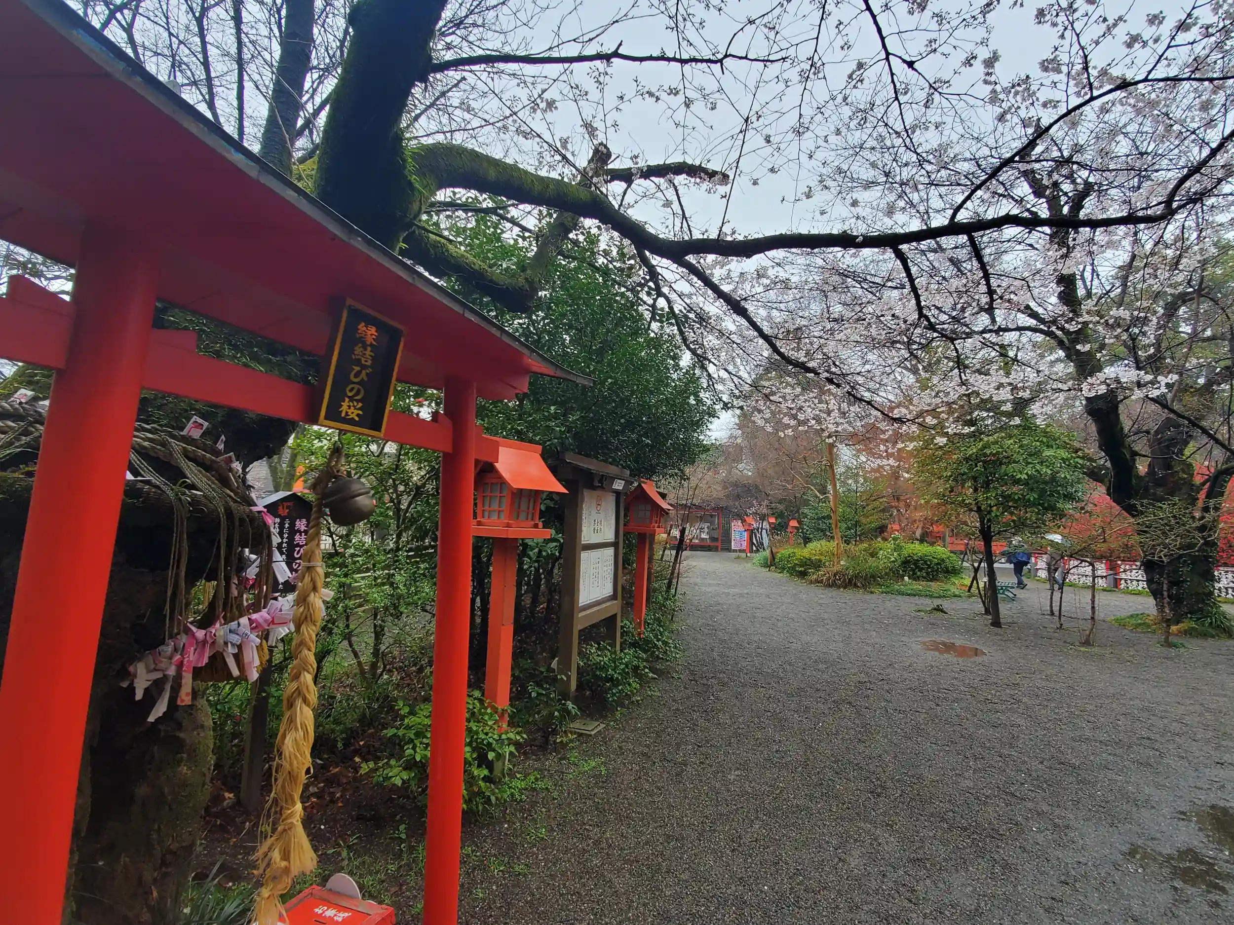 春の嵐だったそうですが、自分が行った時は霧雨程度で特に傘も必要なく、人もほとんどおらず、シンボルの木瓜の花は満開、神事の祝詞や太鼓の音が聞こえて来て雰囲気抜群。