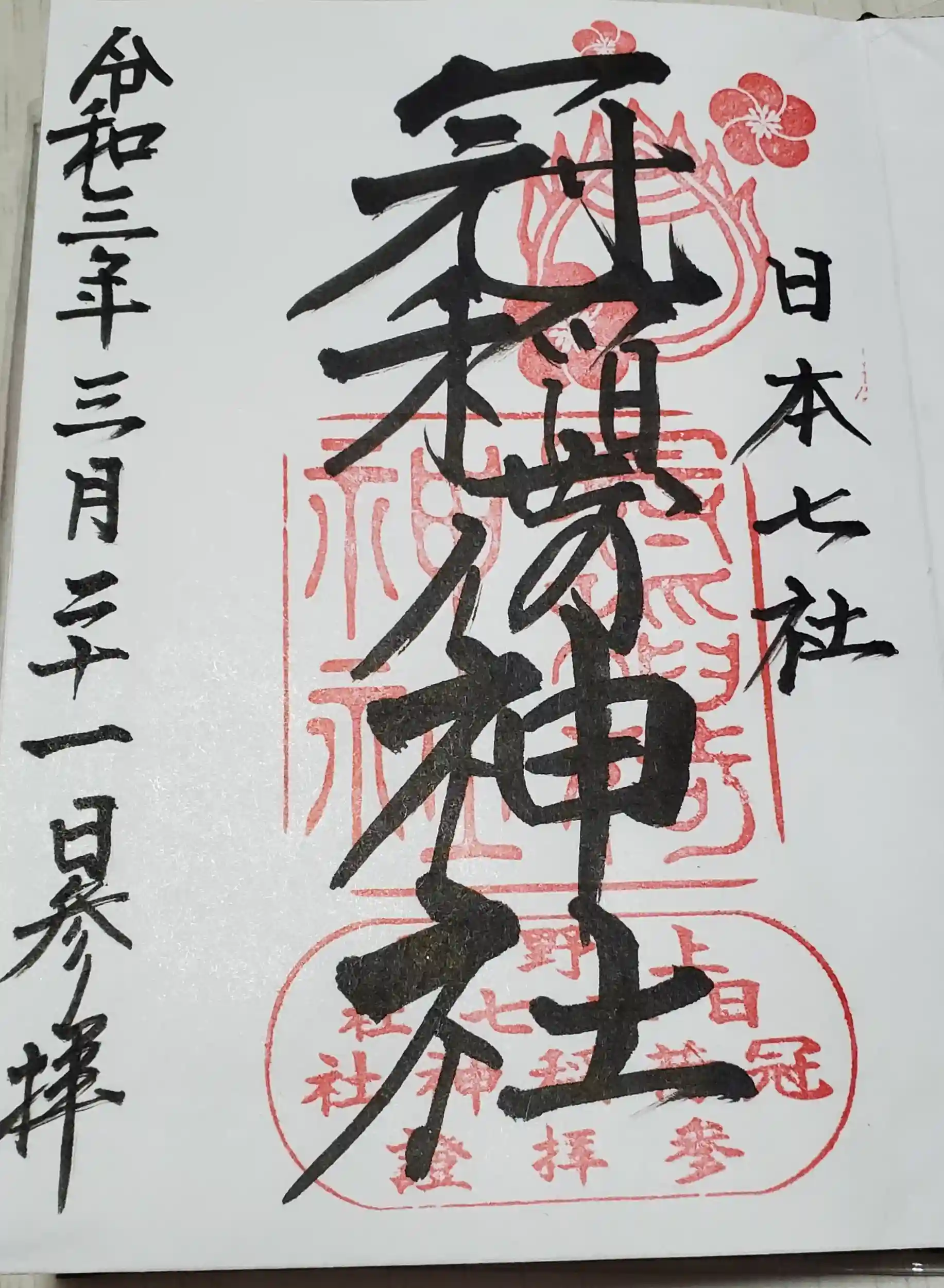 3月の神様御朱印をいただきました
