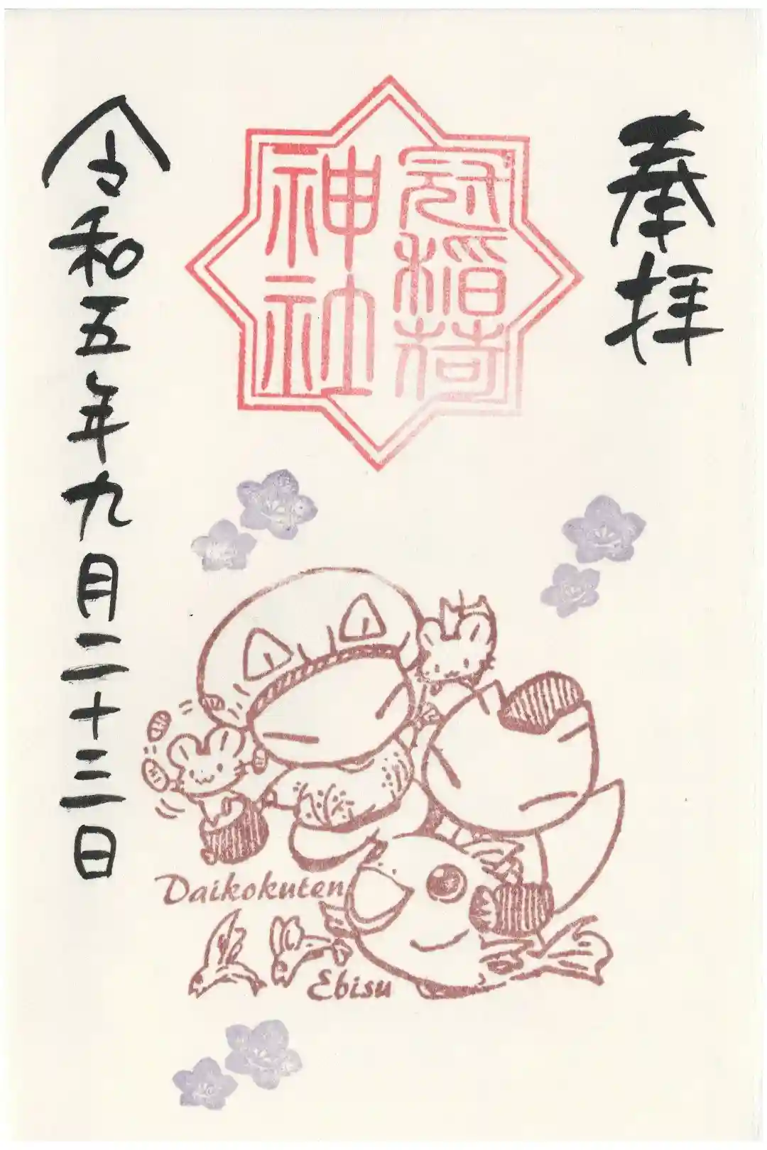 8/1にミニ御朱印を頂いた方に限定で8/26に先行書き入れしていただけた9月の朔日詣ミニ御朱印