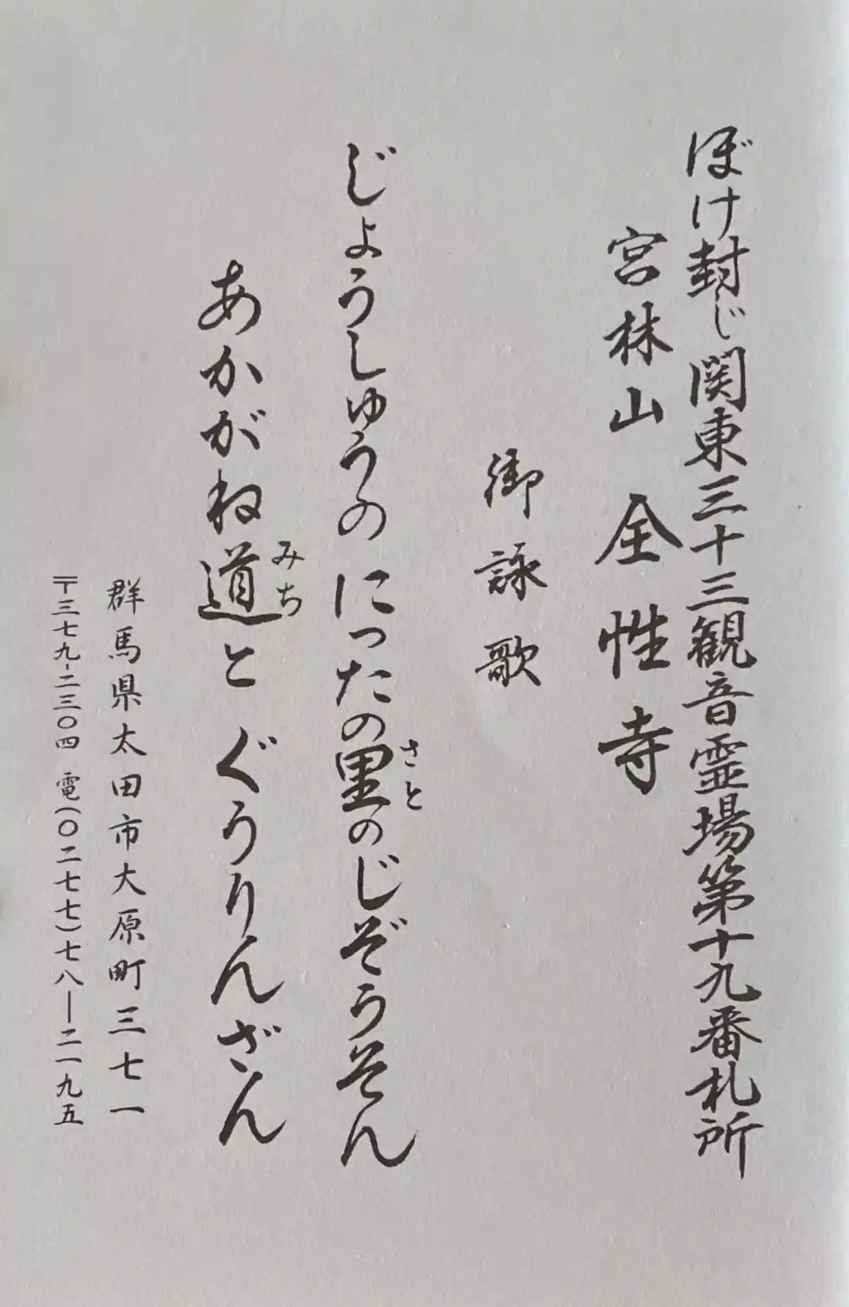 ぼけ封じ関東三十三観音霊場第十九番札所の全性寺です。