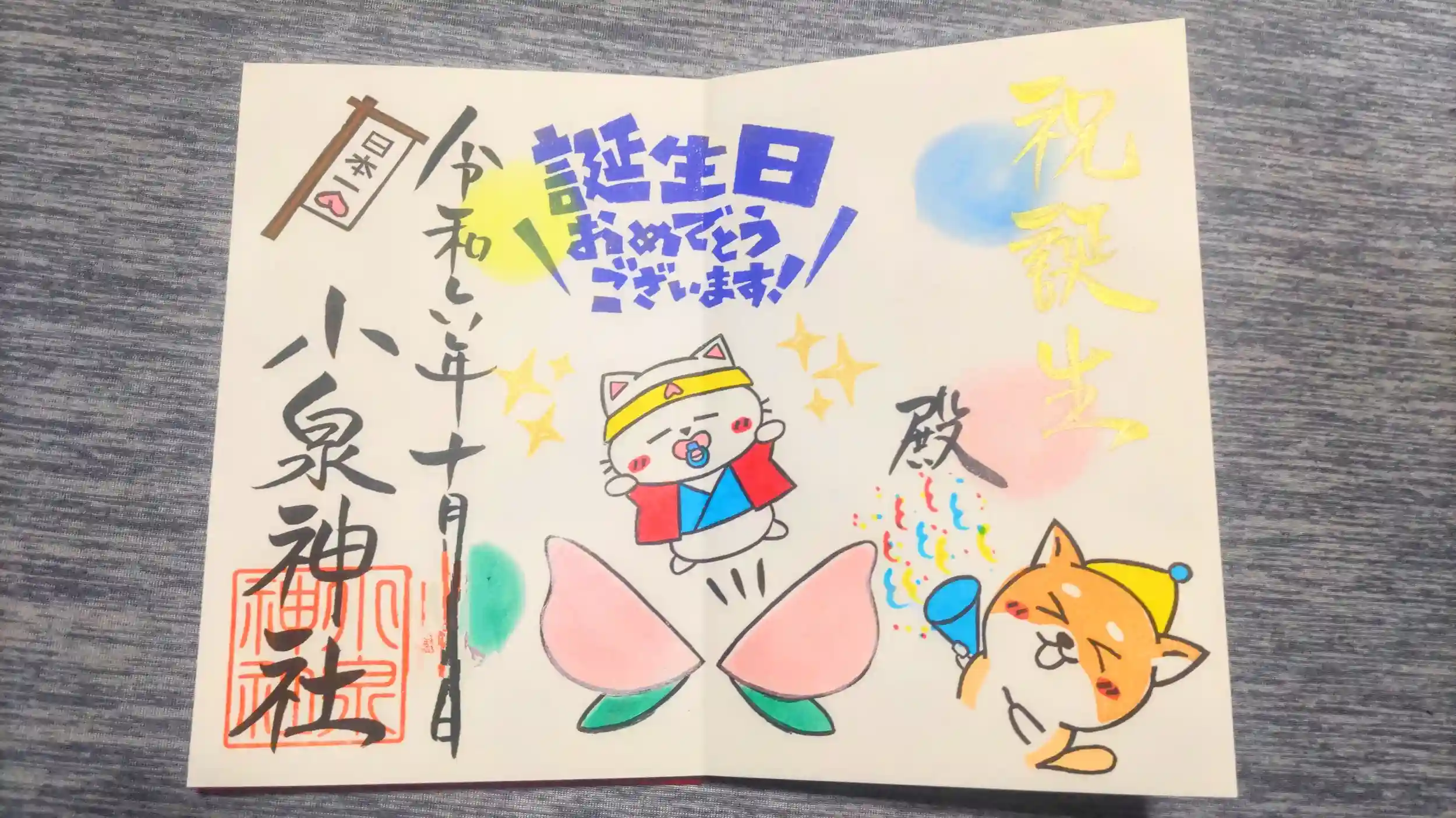 お誕生日御朱印は桃太郎とかぐや姫の2種ありました。お誕生日御朱印はレターパック等での返送となるようです。通常版とあわせて10/19にお願いしいて、10/22にはもう返送されてきました。