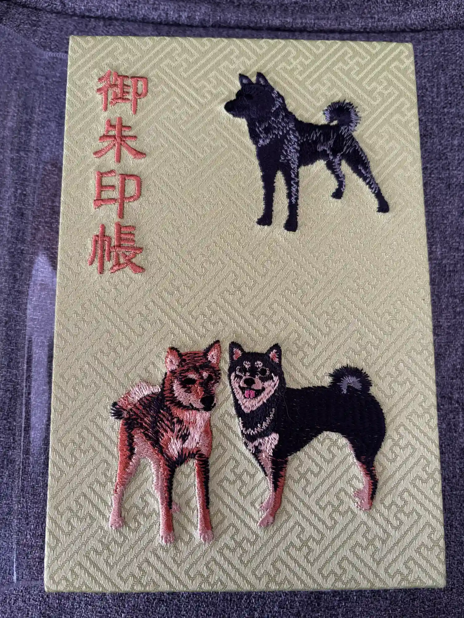 六匹の日本犬が刺繍してあります。