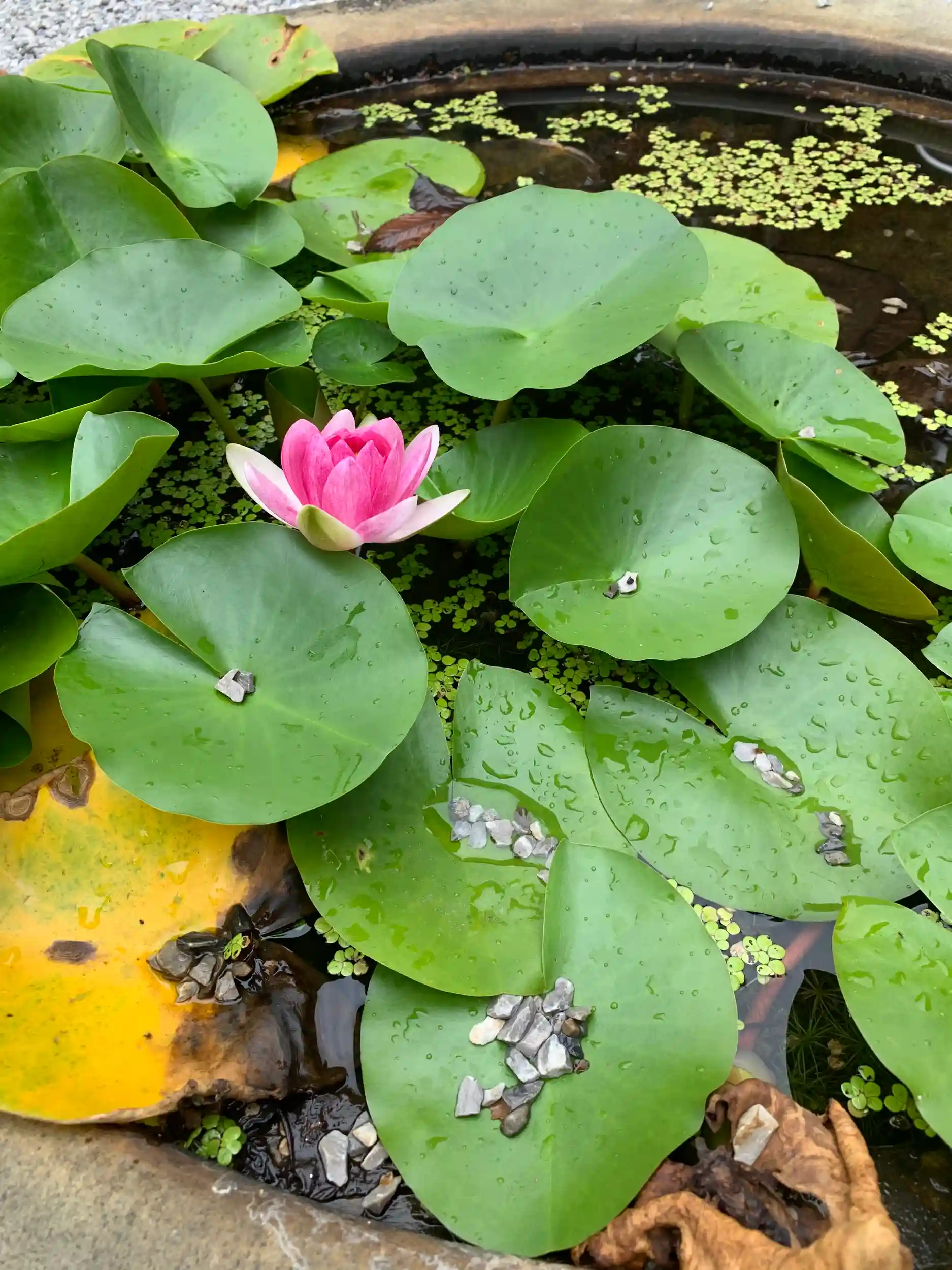 大師堂の前の水鉢に一輪だけ咲いていました。