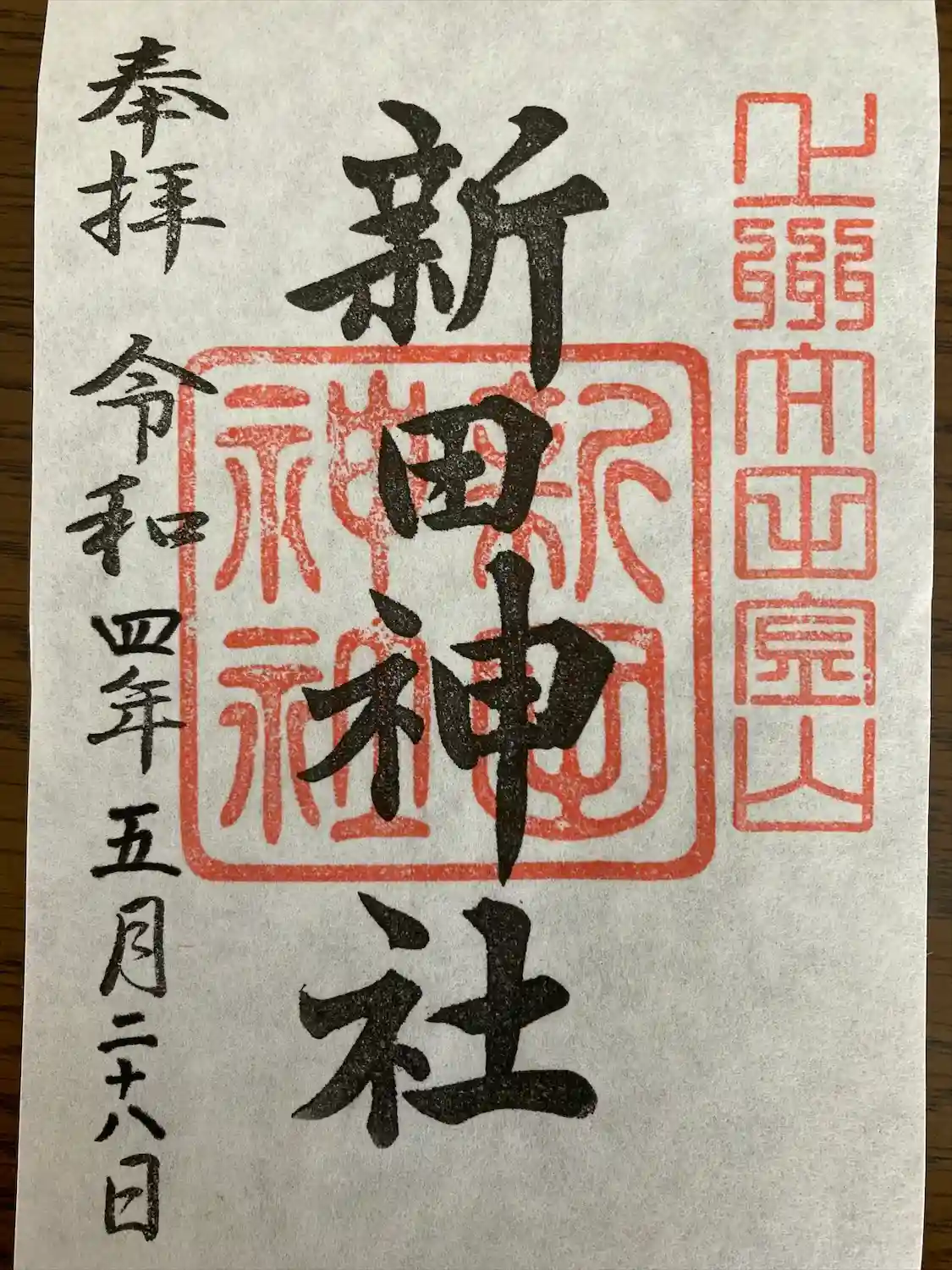 左は山頂の新田神社、右は麓の春日神社にあった書き置き。