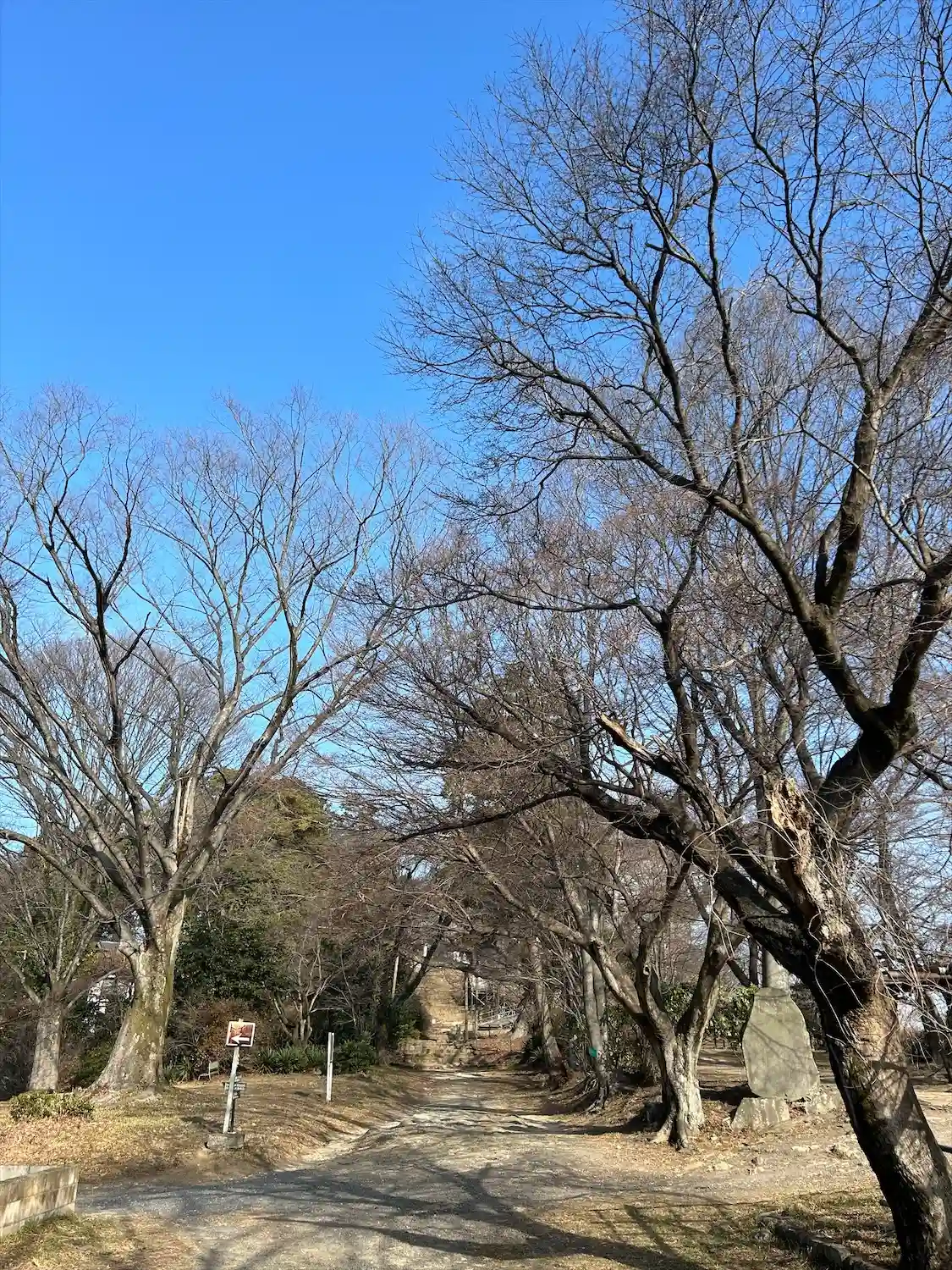 樹齢800年の大ケヤキが鳥居みたいで、その奥にありました。