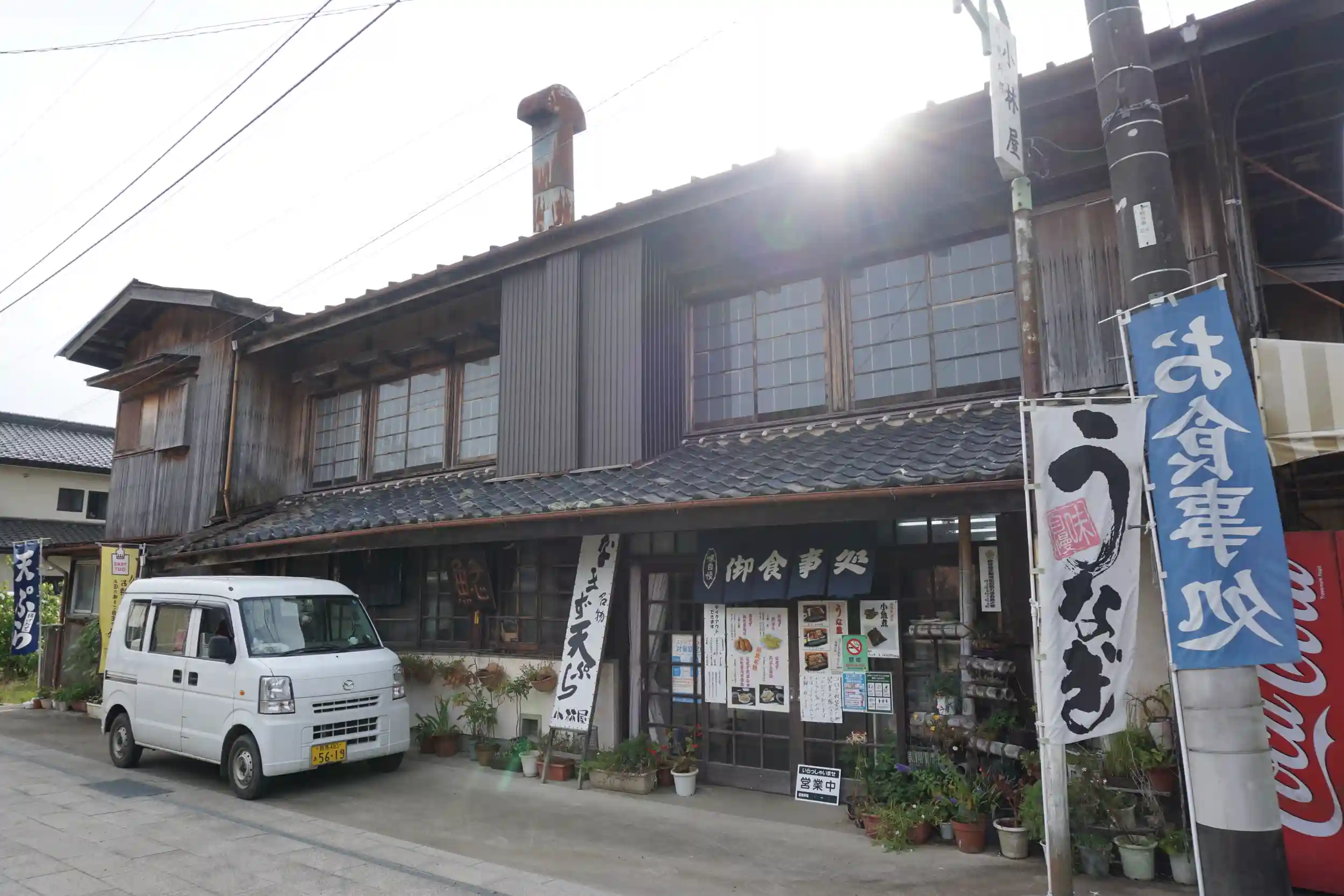 鳥居の目の前にある小林屋さんで見たなまずの天婦羅の文字。
