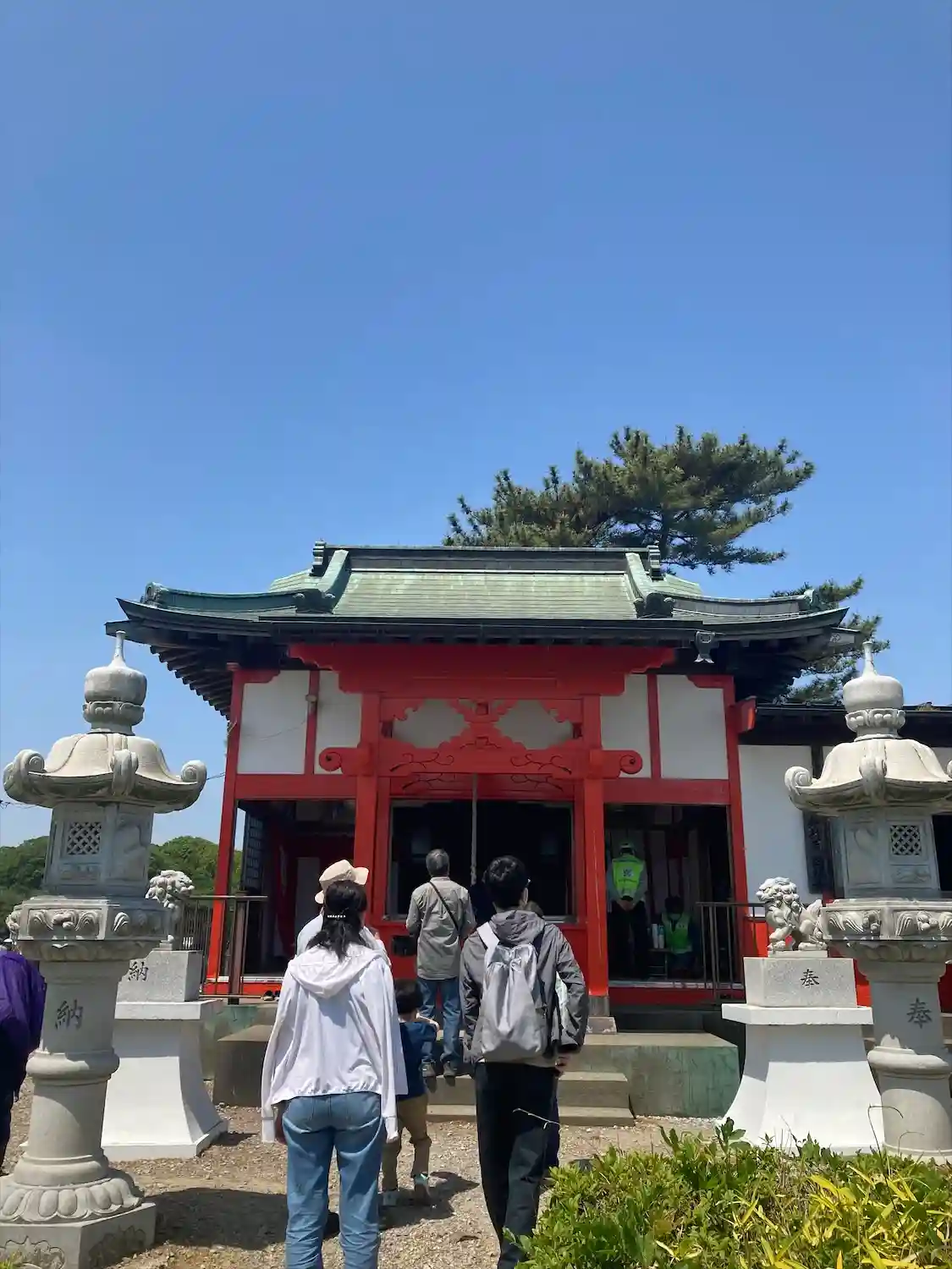 赤い橋を渡ってお参りできます。
