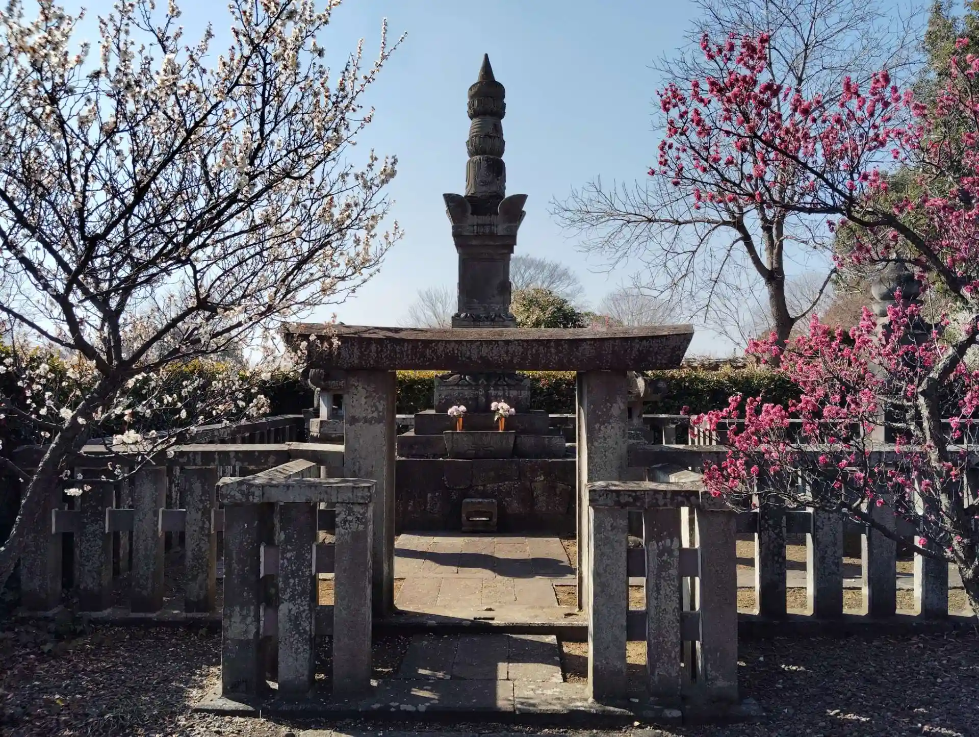 両脇には梅の花が咲いていました