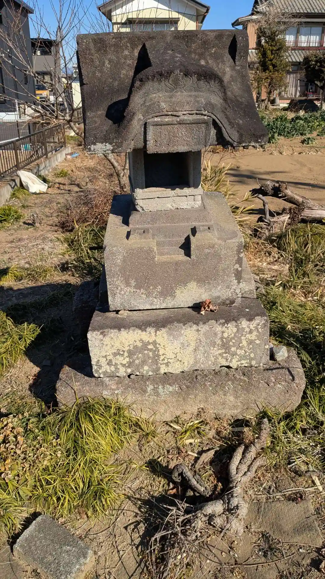 人の家の畑の片隅にあり私有地なのでしょうがこの祠だけ外からでも参拝できるようになっていました。