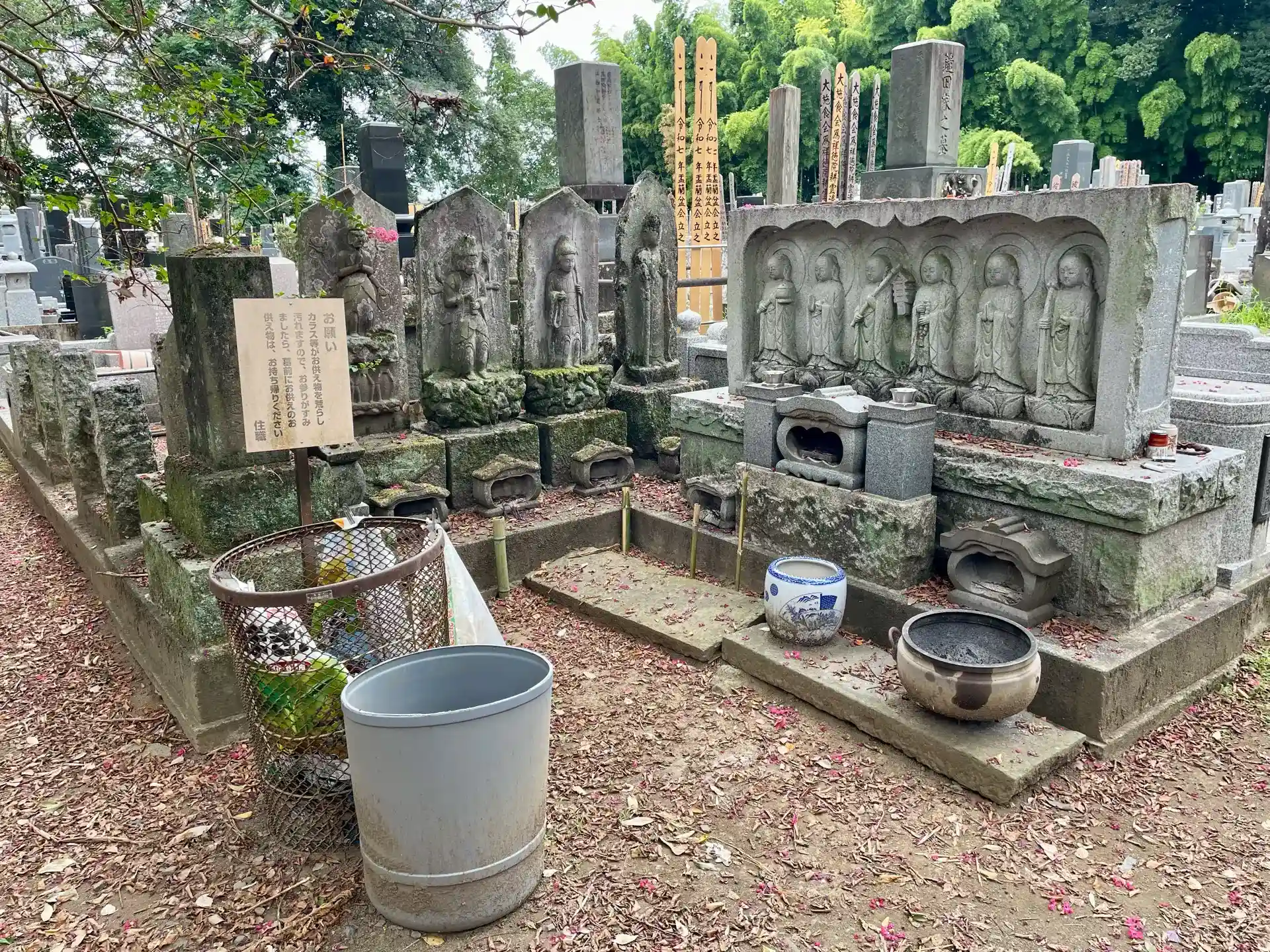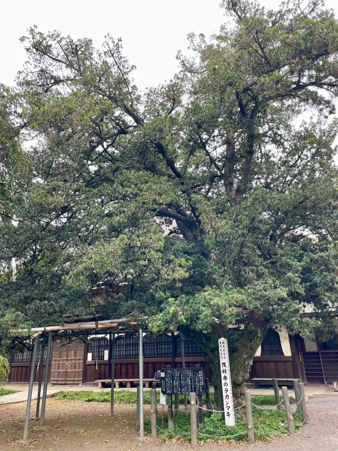 また、本堂の前には館林市の保存樹に指定されたシダレザクラや県指定の天然記念物である樹齢約600年のラカンマキの巨木がある。