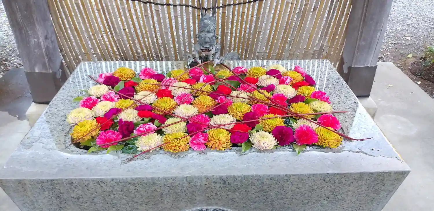 (有)佐取生花店様ご協力の元、手水を花手水に致しました。