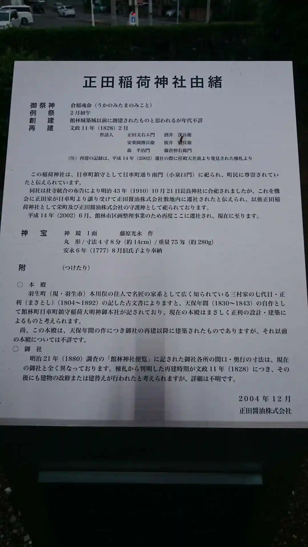 正田醤油株式会社敷地内にある神社