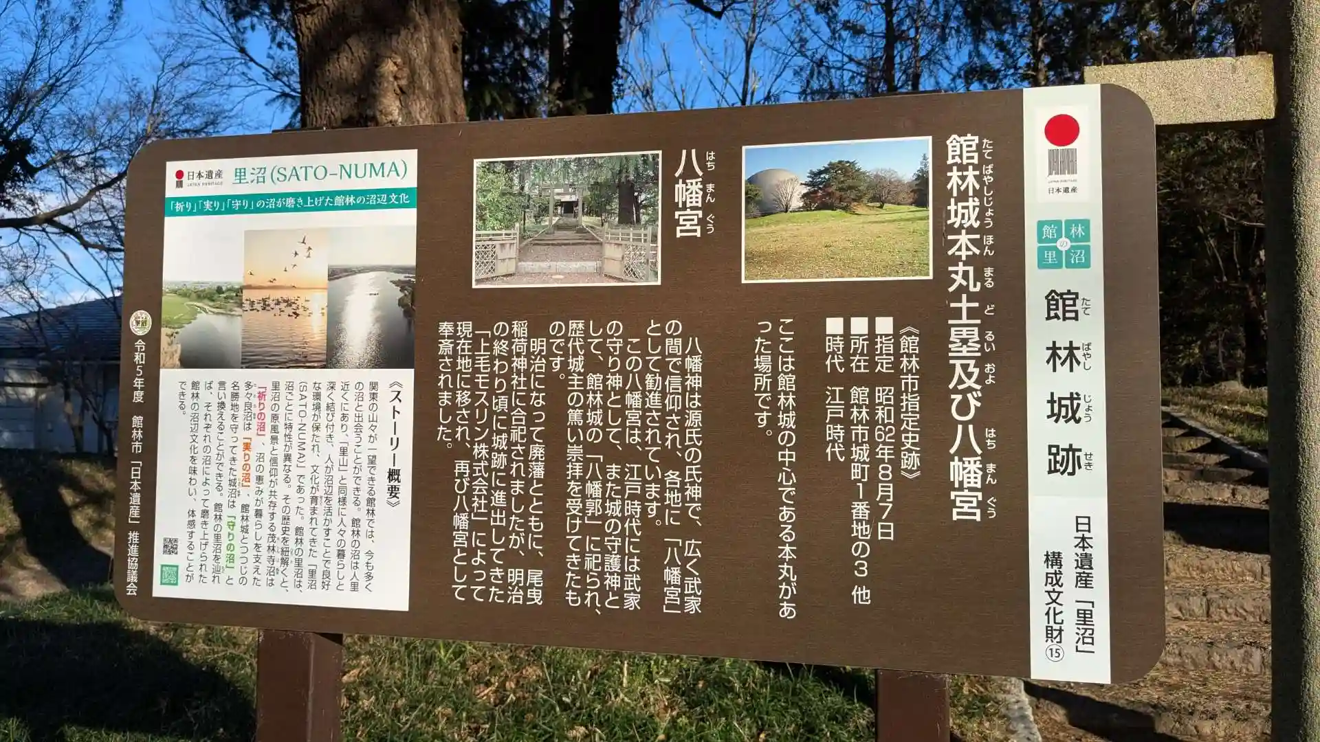 元々はここから少し東に行った場所に建てられていてかつては館林城の八幡郭に祀られていました。廃藩置県後に尾曳稲荷に合祀され明治後期に上毛モスリン株式会社が館林城二の丸跡に進出した際にこの場所に移されました。