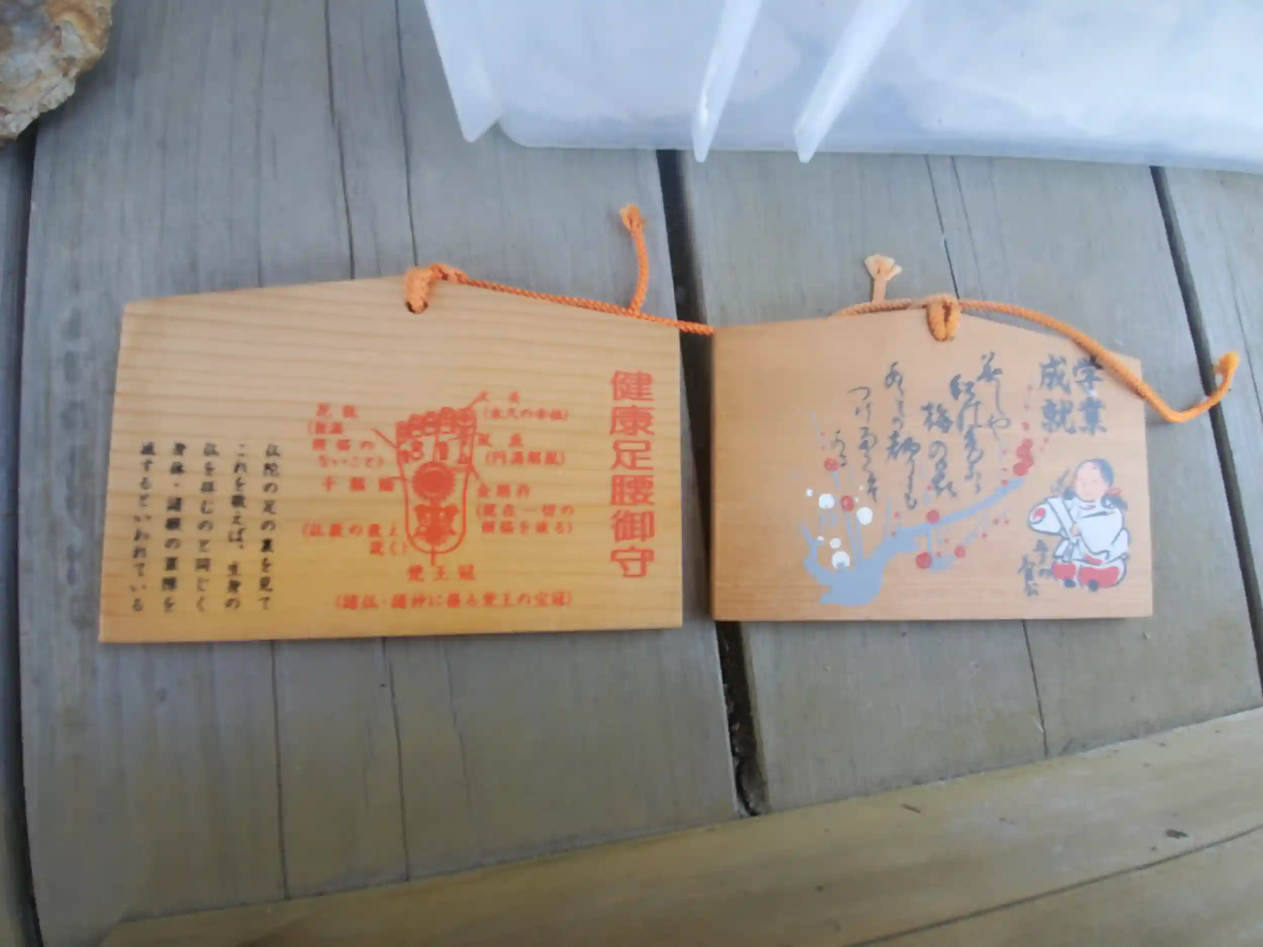 足腰に効く絵馬お守りと、学業成就の五才の天神様の絵馬、どちらも500円