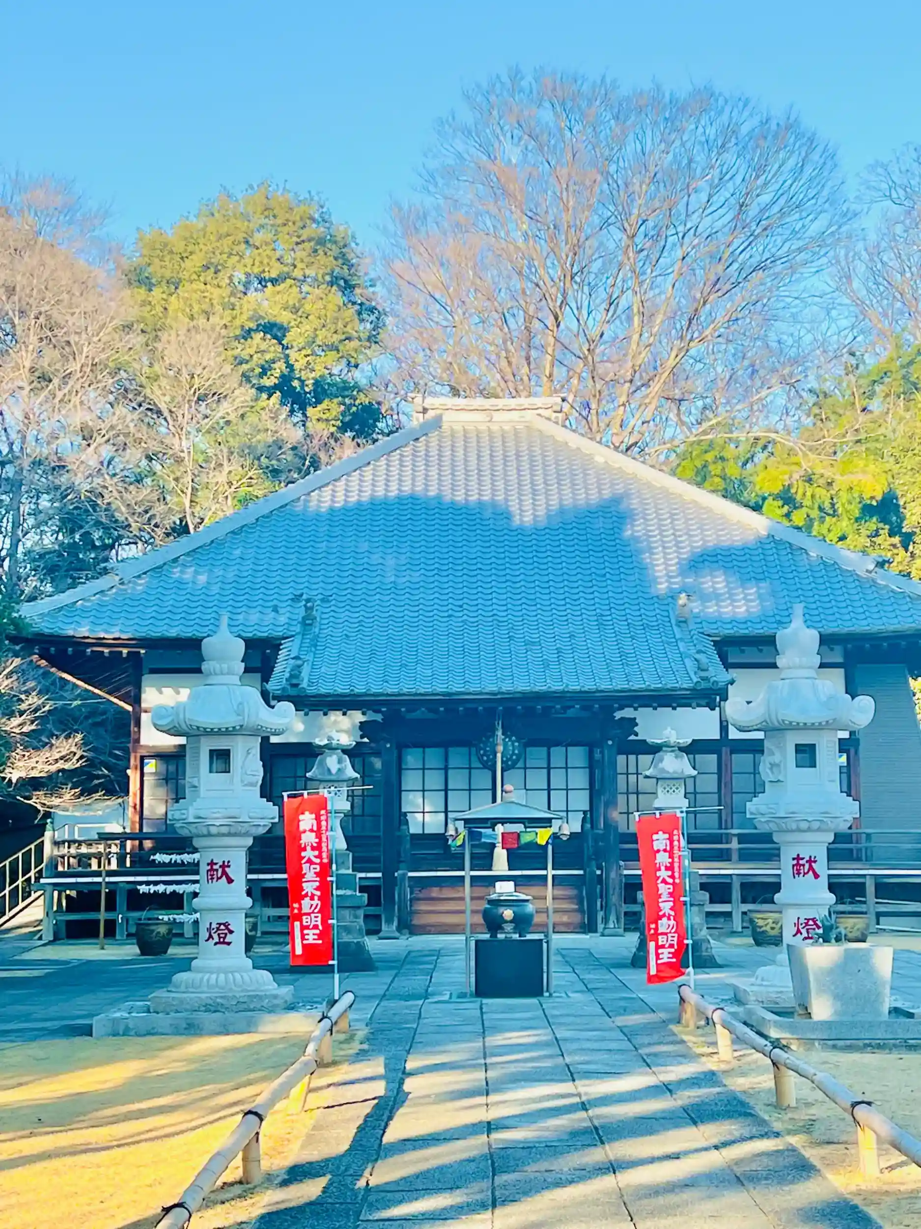 群馬県 邑楽郡 千代田町 赤岩 に境内を構える、赤岩山 光恩寺、当方は 道の駅 全国制覇者で 全国の寺社、霊場を巡礼してます。群馬県の方々の人の良さなのか県民性の高さなのかは解りませんが、群馬の寺院、神社、道の駅等ムラなく素晴らしい対応で気持ちが良く、また行きたいと想いました、寺院対応も丁寧でした、2024.1に北関東不動尊霊場にて参拝致しました、国家試験女性医師第一号、荻野吟子の生家が隣接して在る寺院、どの様な寺院か引用を用いて調べて見ました、山号は 赤岩山、寺号 院号は光恩寺、宗旨 宗派は 高野山 真言宗、ご本尊は 不動明王、関東九十一薬師霊場 第四十番札所、関東百八地蔵尊霊場 第二十一番札所、北関東三十六不動尊霊場 第十一番札所、赤岩不動尊、光恩寺の創建は雄略天皇が兄である穴穂皇子(安康天皇)のために建てられた全国九ヶ寺の一つとされます。その後一時衰退しますが弘仁5年(814)に真言宗の開祖弘法大師空海が再興、元亨元年(1321)には後醍醐天皇が兵火で焼失した堂宇を宇都宮氏に命じて再建し700石の寺領を寄進しています。江戸時代に入ると幕府から庇護され慶安元年(1648)には徳川家光から寺領を安堵されています。何度か火災に見舞われ現在の本堂は明治5年(1872)に再建されたもので、長屋門、庫裏、客殿、石蔵が国登録有形文化財に指定されています。
