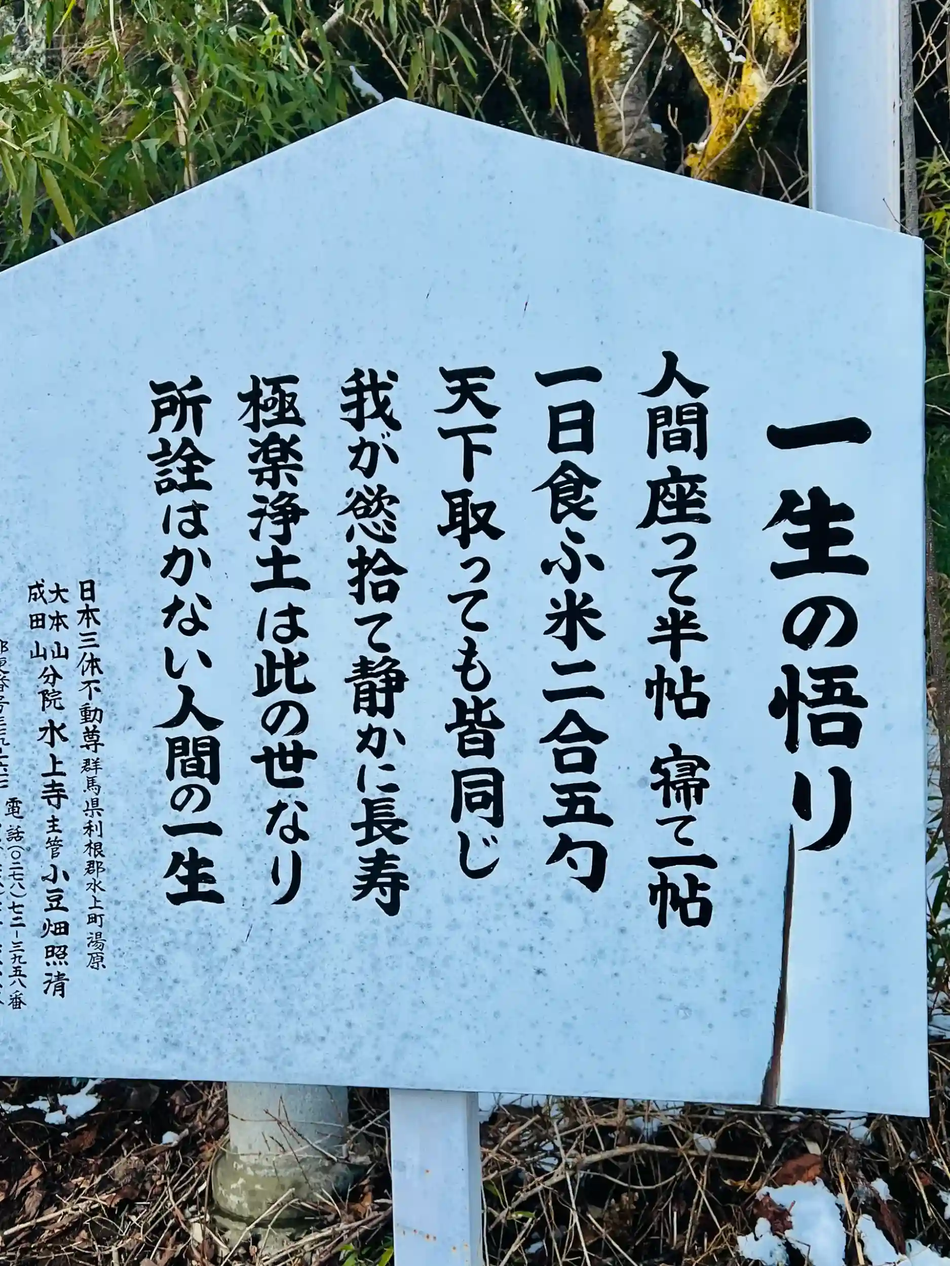群馬県 利根郡 みなかみ町 湯原 に境内を構える、成田山 水上寺、当方は 道の駅 全国制覇者で 全国の寺社、霊場を巡礼してます、2024.1〜3に 北関東三十六不動尊霊場にて参拝致しました、群馬県の方々の人の良さなのか県民性の高さなのかは解りませんが、群馬の寺院、神社、道の駅等ムラなく素晴らしい対応で気持ちが良く、また行きたいと想いました、水上寺 対応も住職の人柄も非常に良く、色々お話しして教えて頂きました、どの様な寺院か引用を用いて調べて見ました。山号は 成田山、寺号 院号は 水上寺、宗旨 宗派は 真言宗 智山派、ご本尊は 大日大聖不動明王、北関東三十六不動尊霊場 第一番札所 成田水上不動尊、水上寺は明治二十一年(1888年)に 千葉県 成田市 の 真言宗 智山派の 大本山 成田山 新勝寺より勧請した不動明王をお祀り致しております。当山不動明王像は、下総国成田の地よりお肩移しにて運び上州利根郡水上の地まで「二十八日間」を費して遷座された御尊像です。
