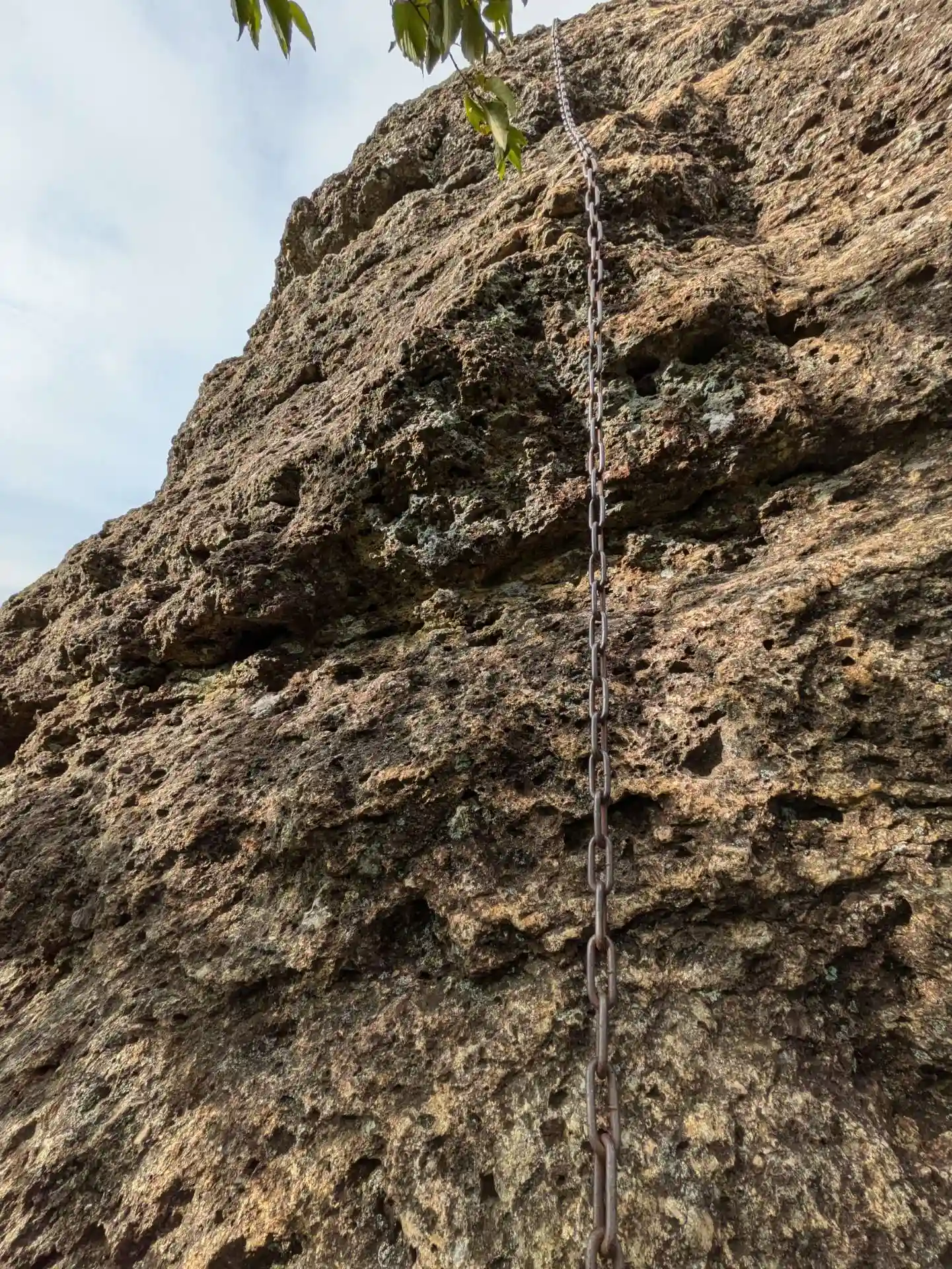 天辺が見えて来ました最後の難関の鎖です岩が多少オーバーハングしてます。“安全確保”が効いてか気休めに全般的にスパスパ登れる感じ。