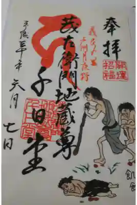 一代記の最後が首で終わるので、気味悪がるといけないので、お地蔵様の絵柄のご朱印を頂きました。
