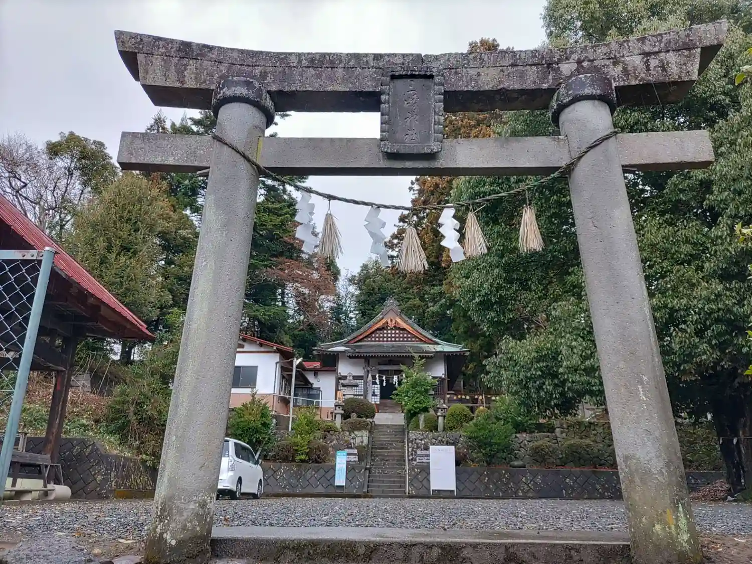 神社は関越道を背に鎮座しています。また、三峯山の登山ルートの一つにもなっています。