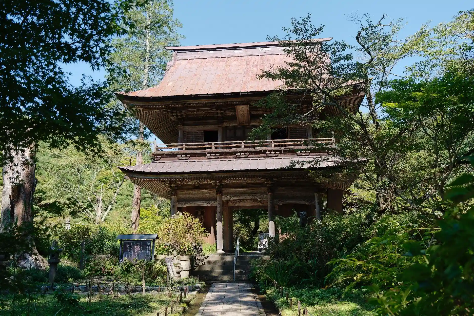 花と緑に包まれたお寺