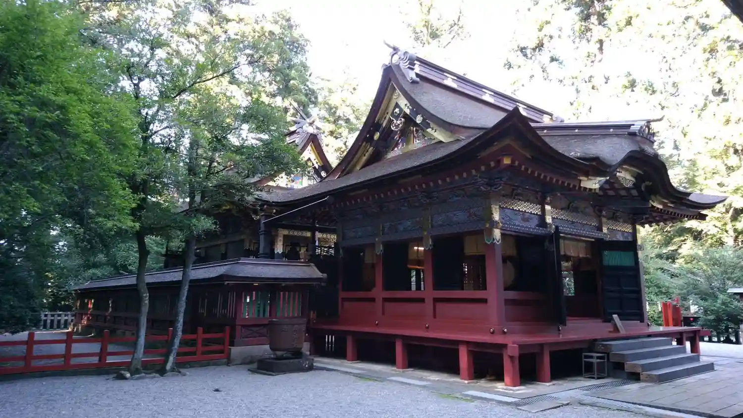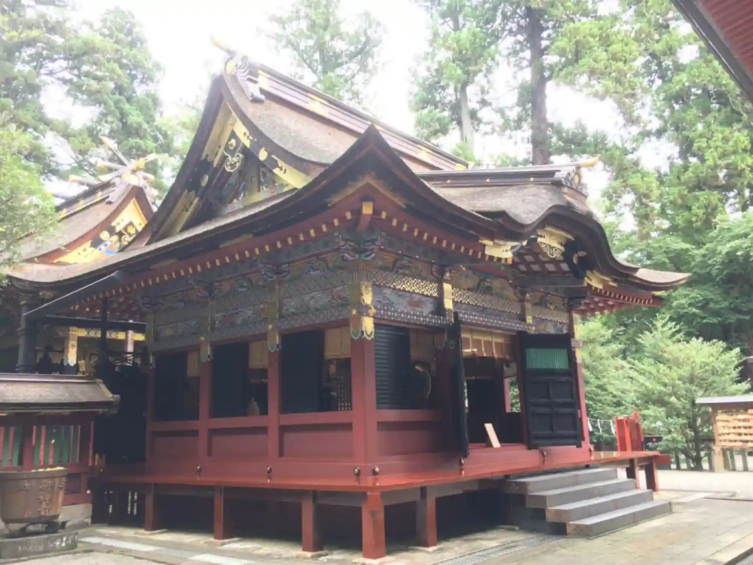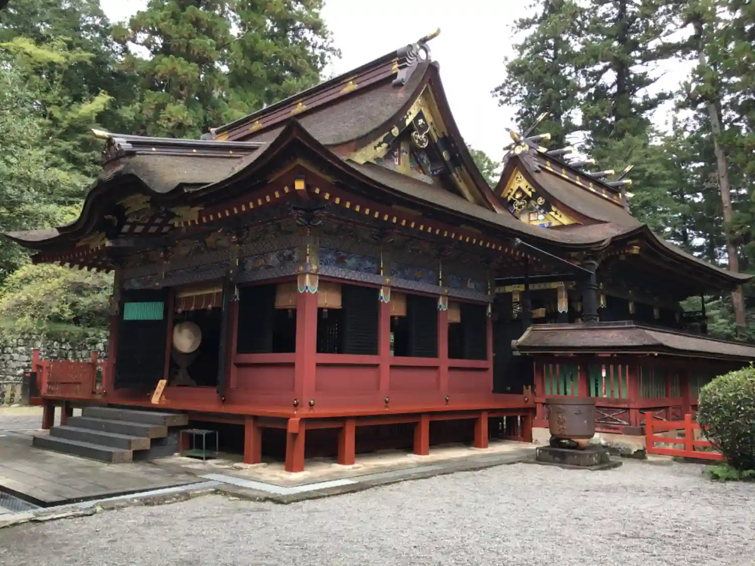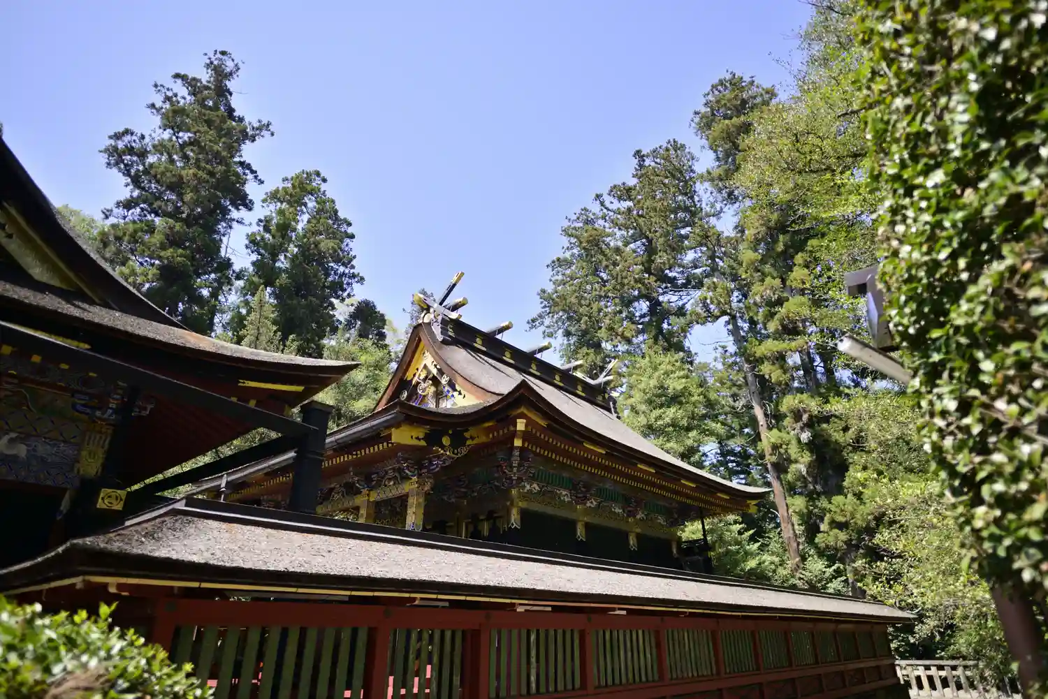 なお、拝殿、幣殿、本殿、回廊は、江戸幕府3代将軍・徳川家光により1635年に造営、5代将軍綱吉により1698年に改修。この改修時に極彩色の漆が塗られ華麗な造りとなっている。いずれも国指定の重要文化財。