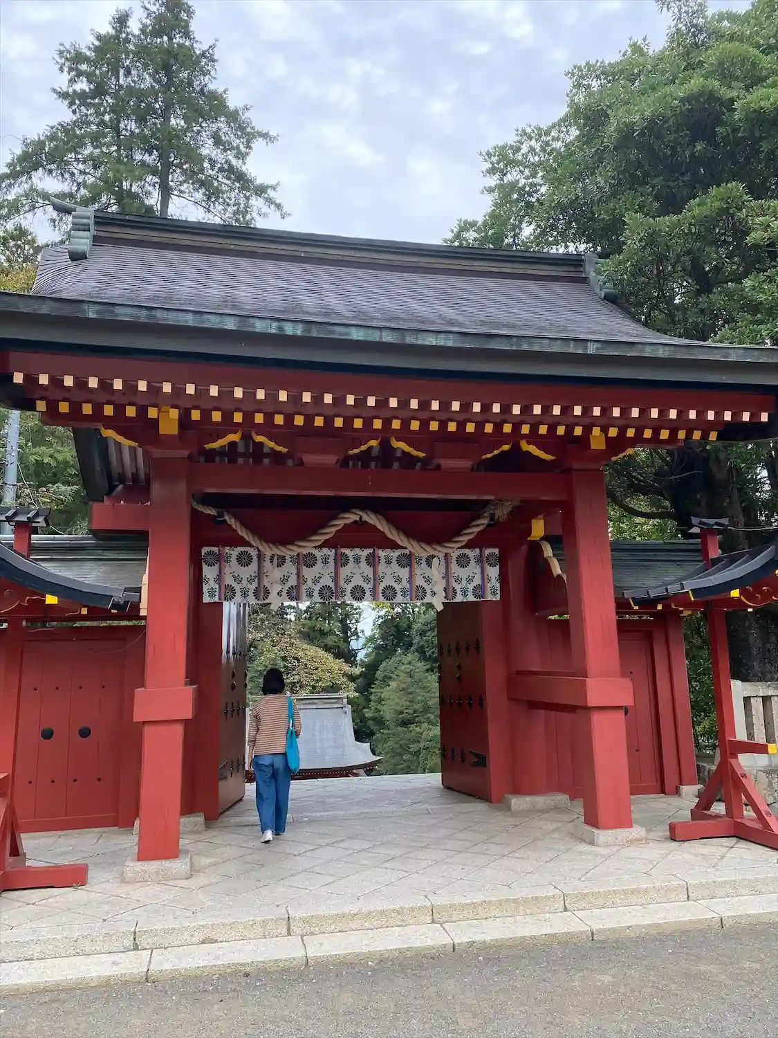 母と一緒に参拝。一の鳥居をくぐり抜け、石段を登って又下っての楼門が素晴らしい‼️
