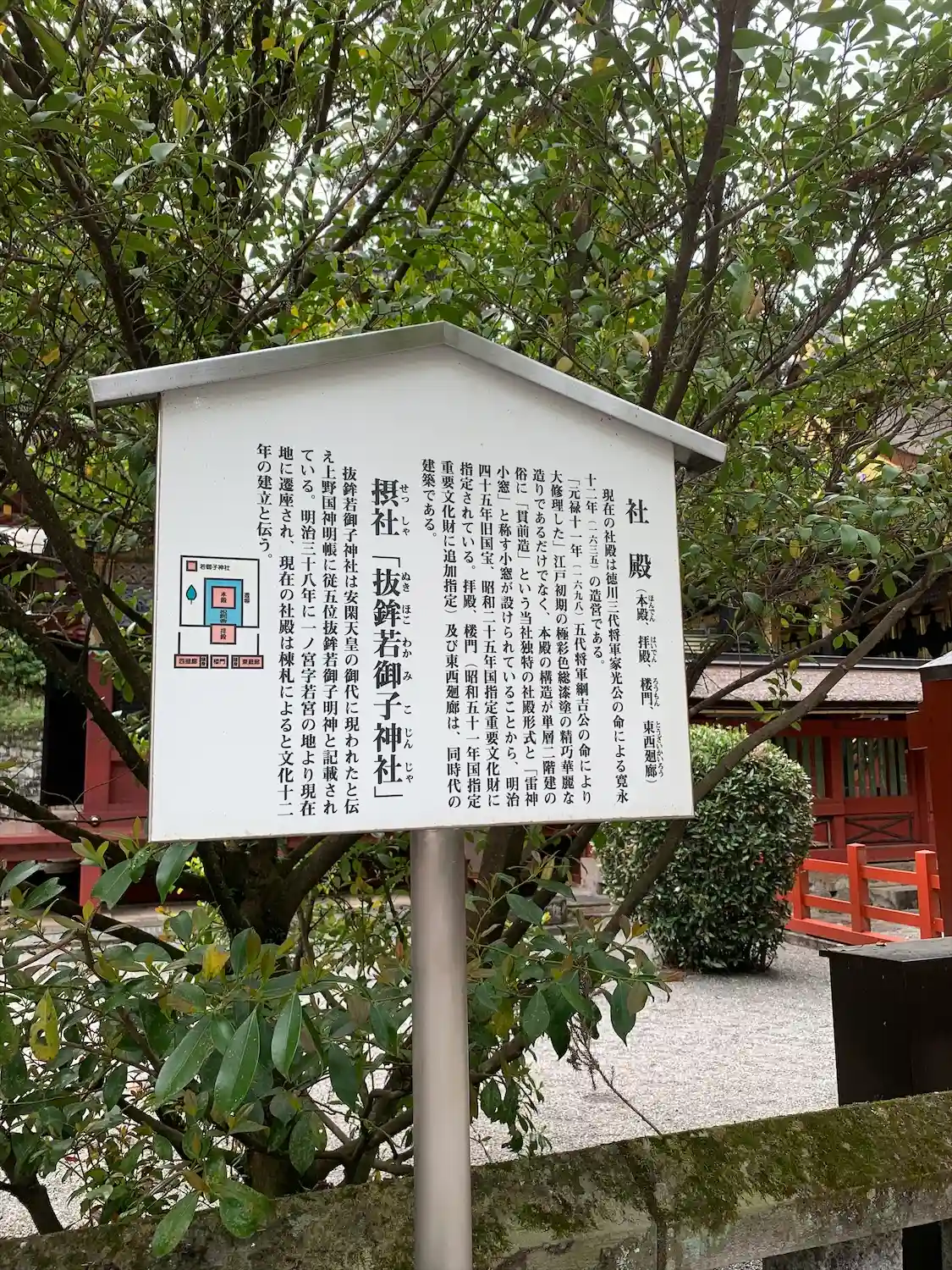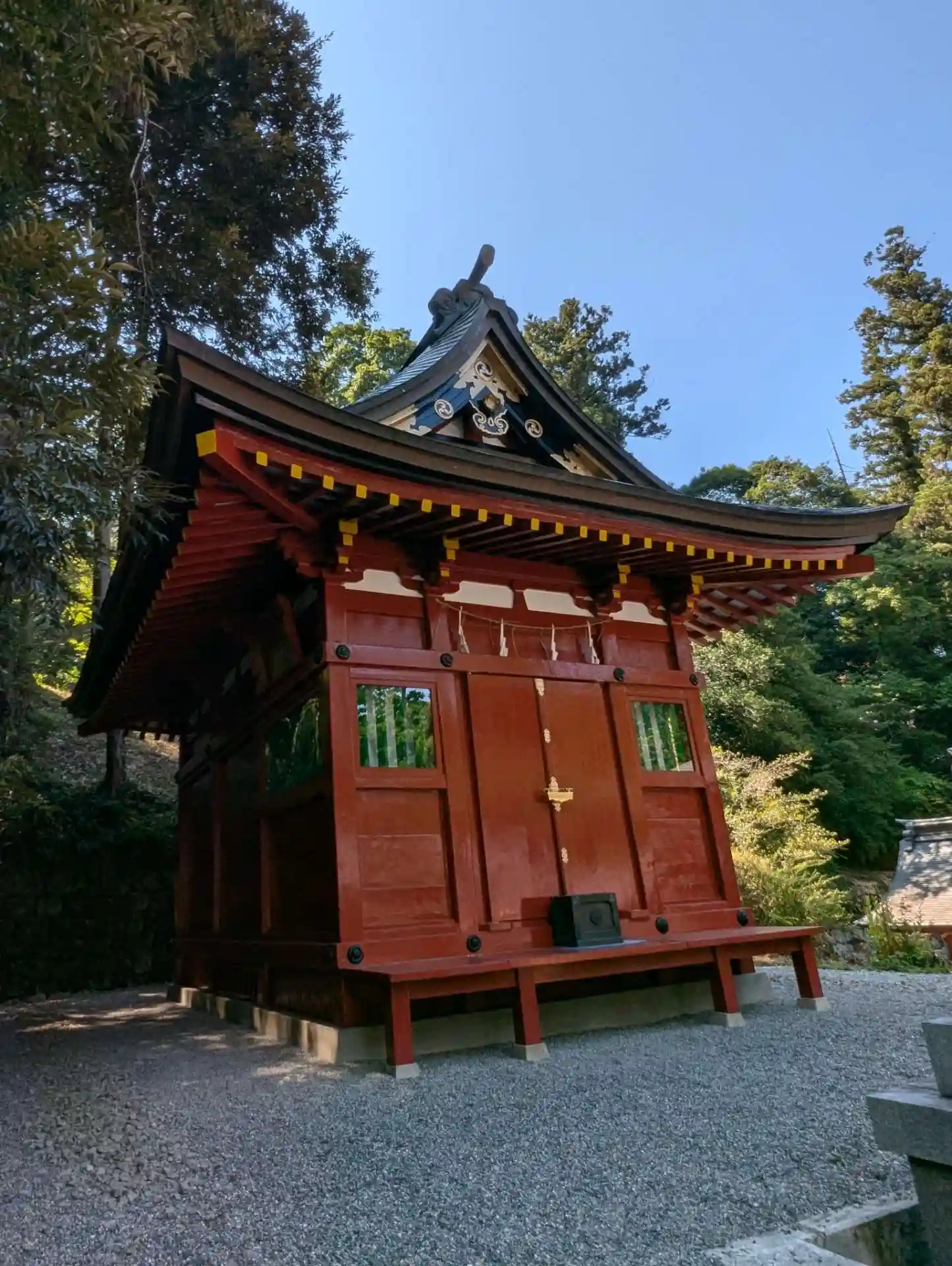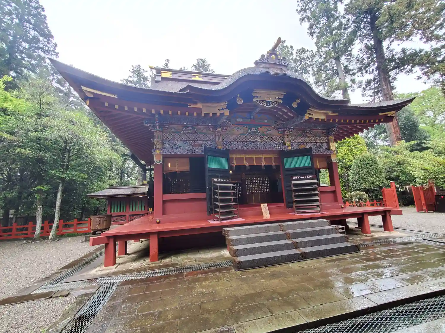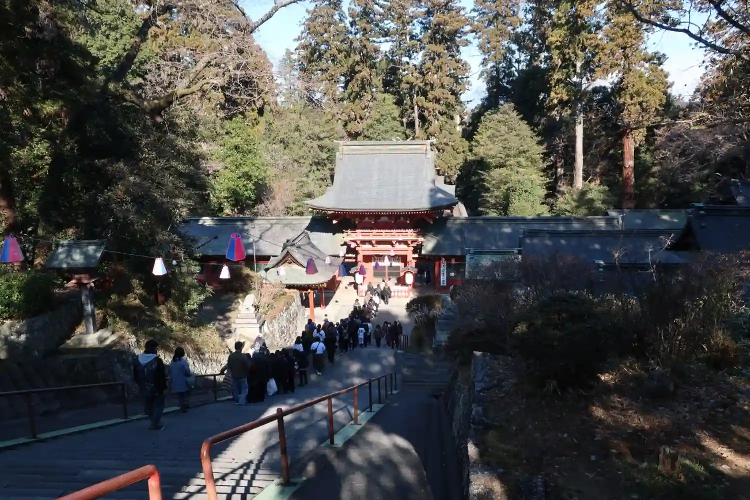 総漆塗りの社殿が見事で、また、参道が下り坂になっているのは珍しいとのことでし…