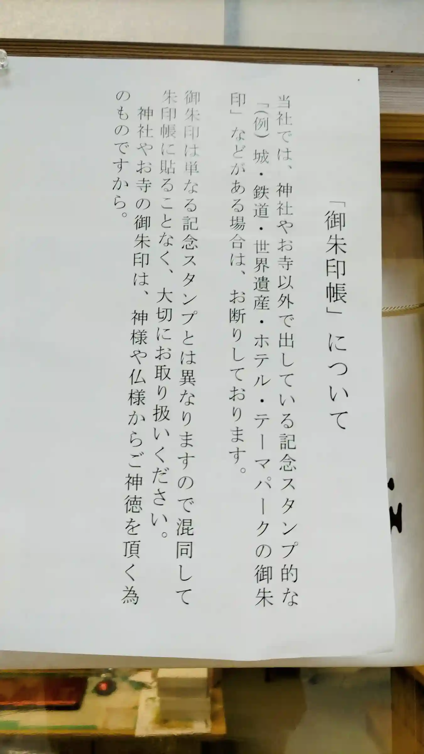 御城印などが押された帳面には授与しない旨の注意書きが受付に貼られており、これまでのページもチェックされます。