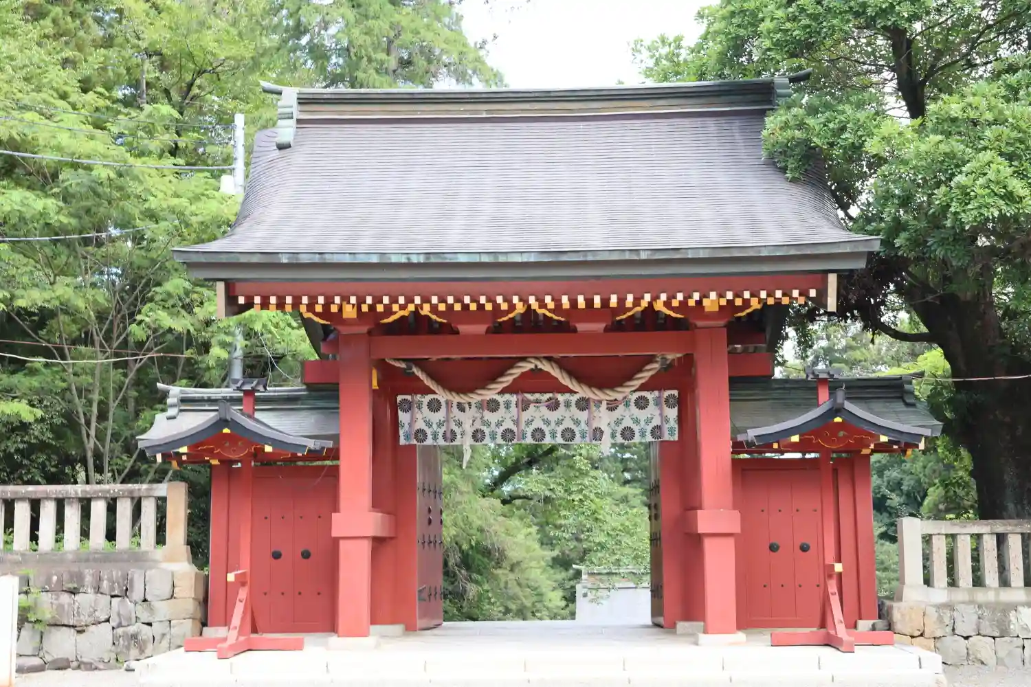 荘厳な雰囲気が漂う美しい楼門 (入母屋造り、銅板葺き)