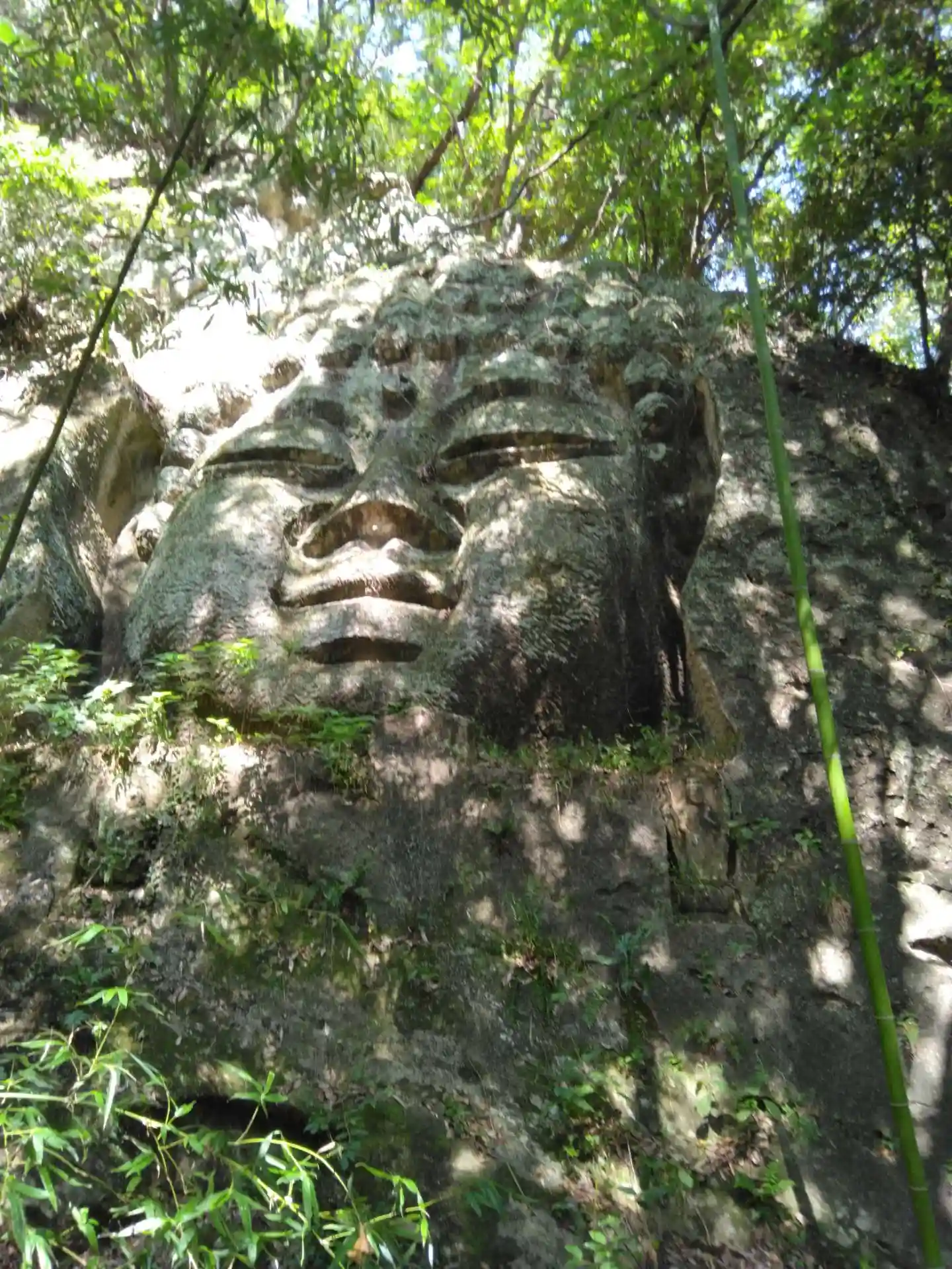 獣道みたいな足場の悪いところを上り、藪蚊などの攻撃に遭いながら辿り着いた磨崖仏。