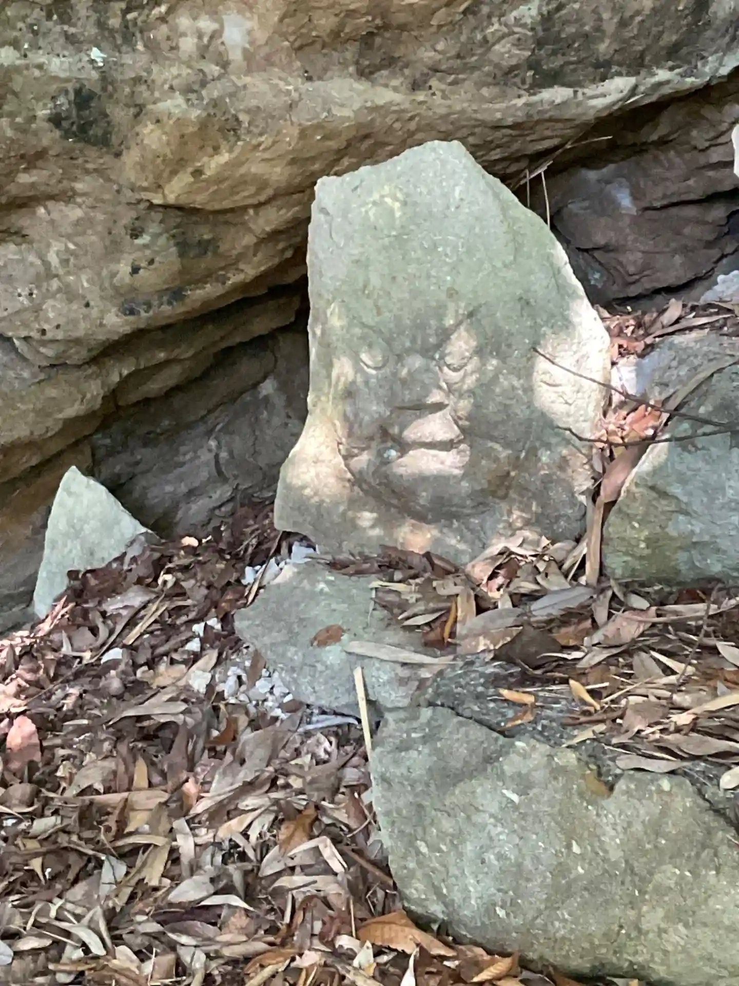 獣道みたいな足場の悪いところを上り、藪蚊などの攻撃に遭いながら辿り着いた磨崖仏。